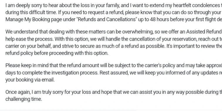 I am deeply sorry to hear about the loss in your family, and I want to extend my heartfelt condolences to you during this difficult time.