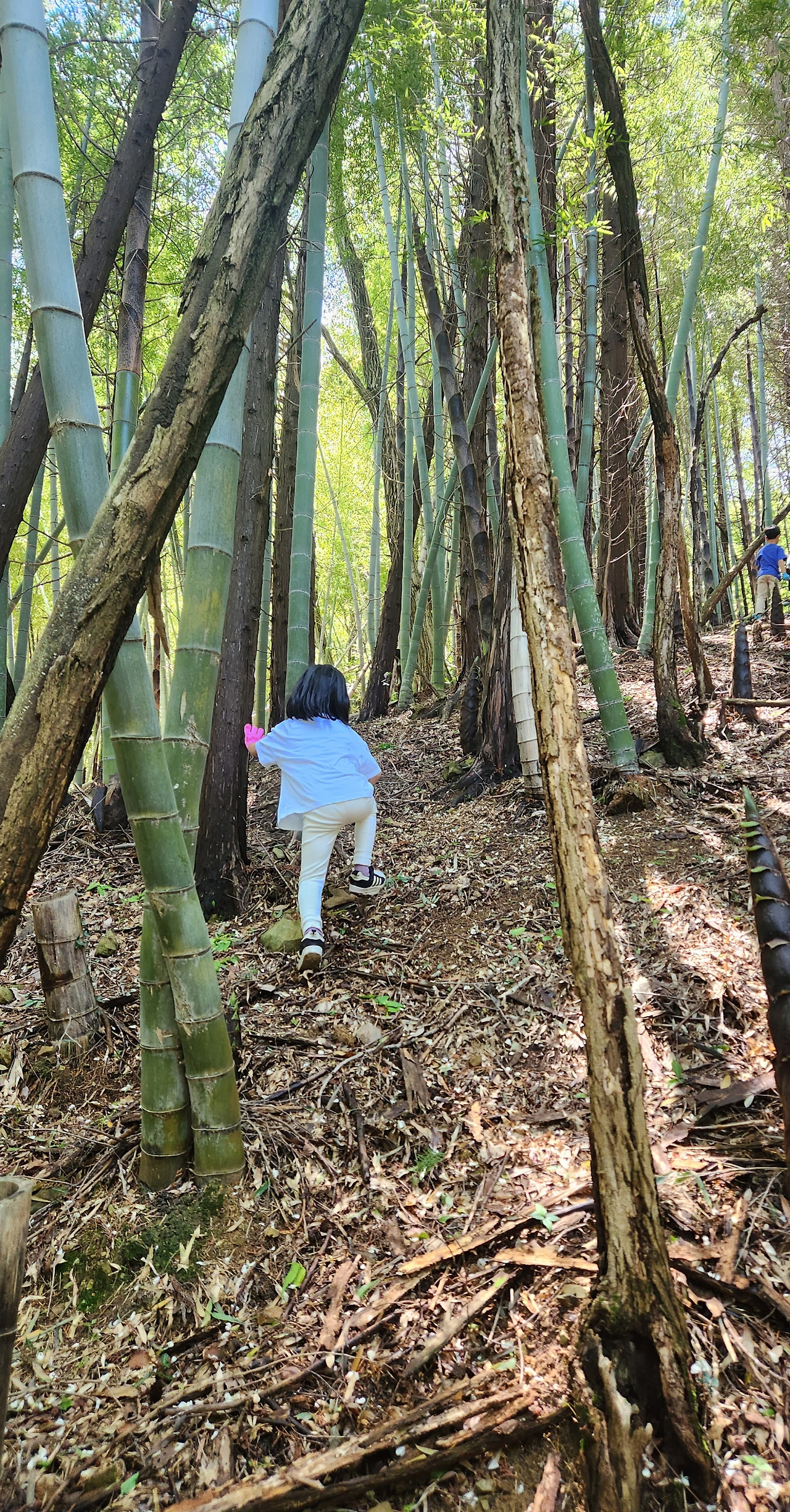 막상 미지의 죽순을 찾아 숲 안으로 뛰어들었다. 아이들은 직접 게임 속 아이템 캐기에 나선 듯 신나서 대나무들 사이를 뛰 다니다시피 했다. 휙, 휙, 휙, 휙 대나무 사이를 넘나들다 땅을 뚫고 솟아난 의기의 죽순 찾기.