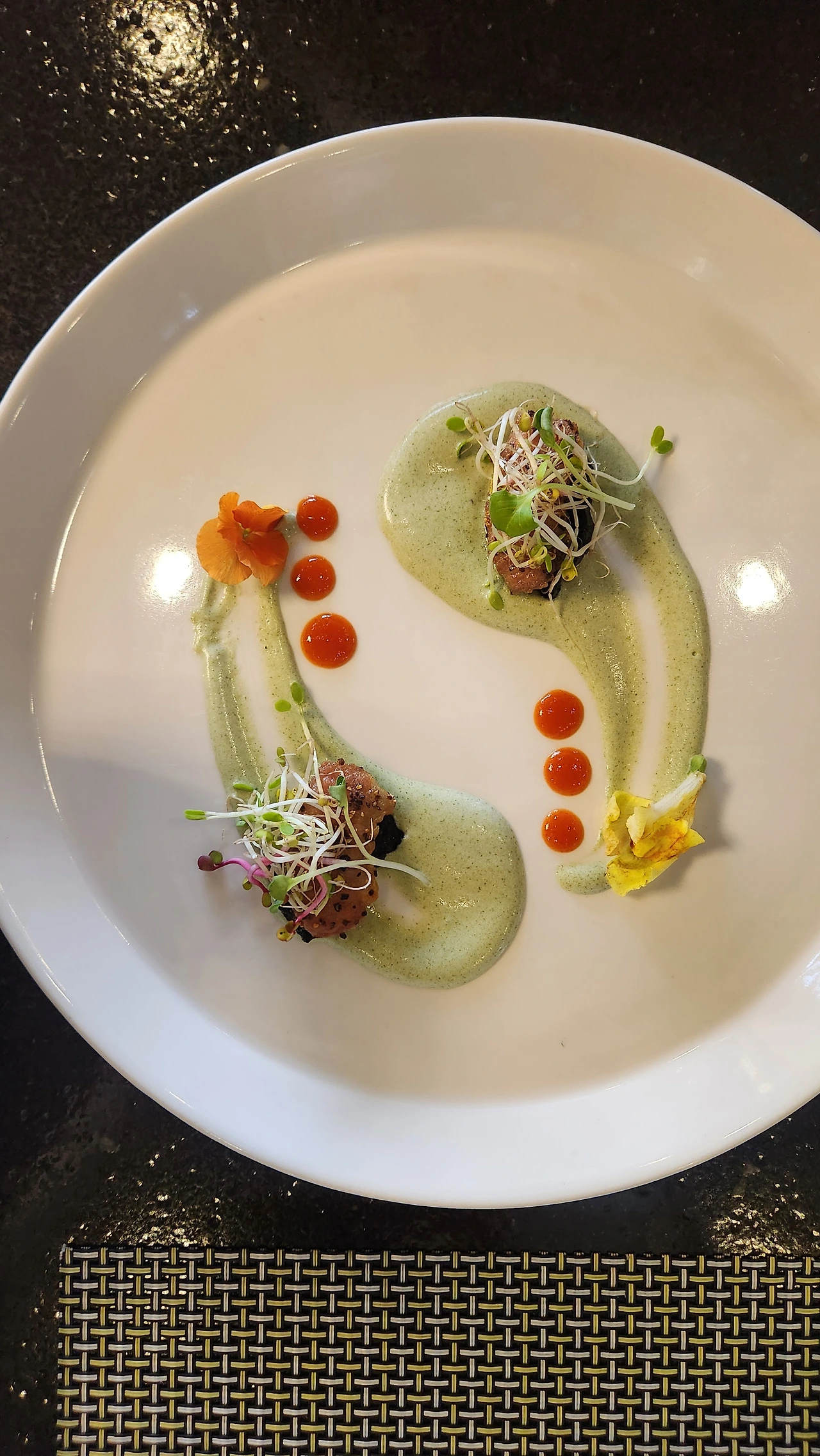 작은 유리병 안에 담긴 샐러드의 색감에 감탄하고 샛노란 호박 스프 위에 흩뿌려진 소스를 궁금해하던 엄마. 엄마는 부드럽고 매콤하던 육회 속에서 크로스타드의 재밌는 식감을 누리고. 바삭한 가지 속 부드러운 새우살도 탐닉하는 듯했다.