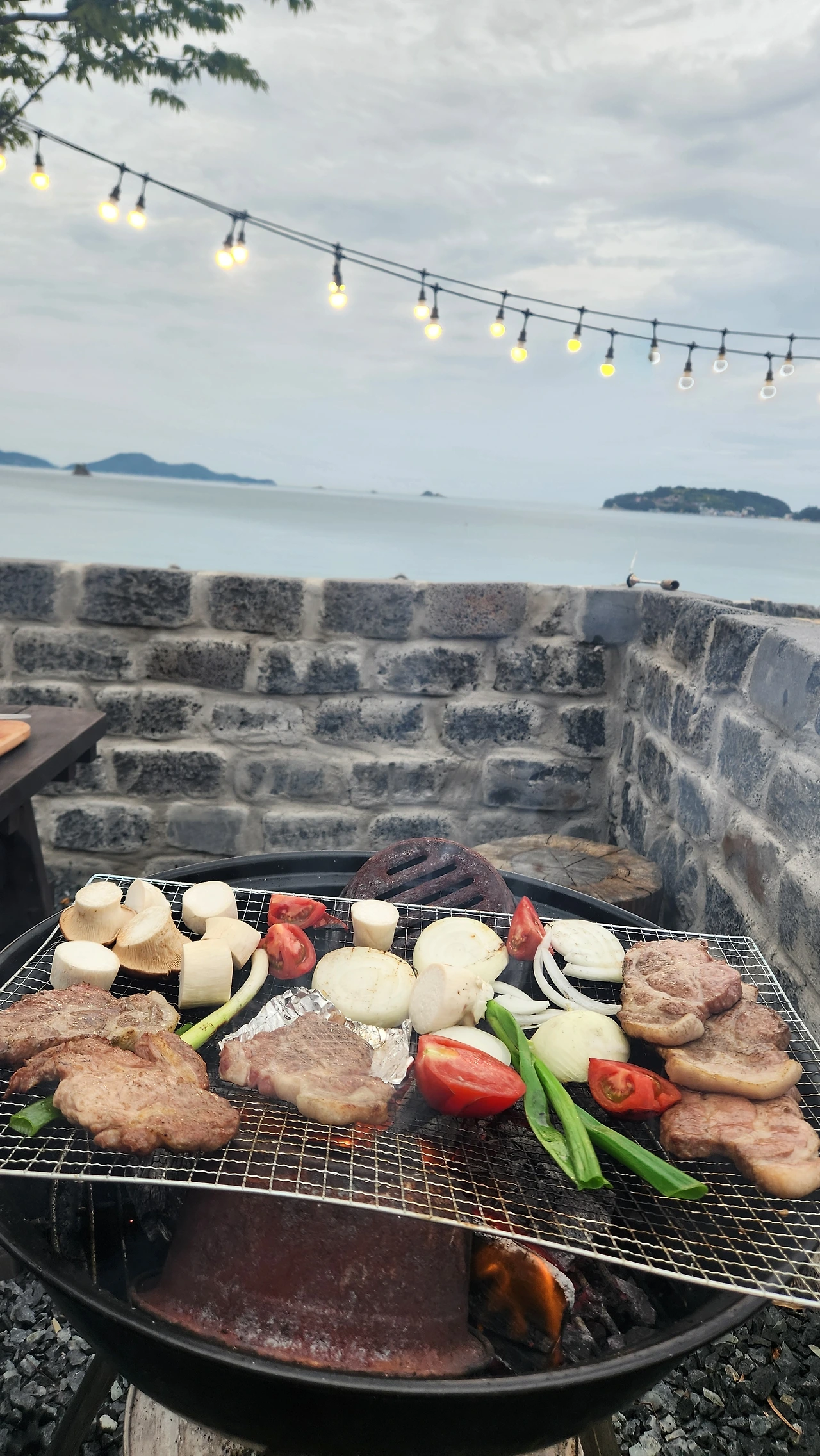 노을이 핑크빛으로 으스름해지면 바베큐 그릴 아래 참숯에 불을 지핀다. 지글지글 익어가는 고기와 야채를 먹으며 어느 술에도 기분 좋게 취할 수 있을 것만 같은 저녁. 밤바다를 바라보며 짠. 캄캄한 하늘을 은은하게 수놓은 듯한 그윽한 조명을 보며 짠. 쌈장에 찍어먹는 아삭한 오이 하나에도 짠. 그렇게 몇 번을 홀짝이다 보면, 몽환적으로 알싸해지는 밤이 찾아온다. 아이들과 함께 탁 트인 앞마당으로 나가 폭죽놀이로 밤하늘을 화려하게 수놓는 밤의 마무리.