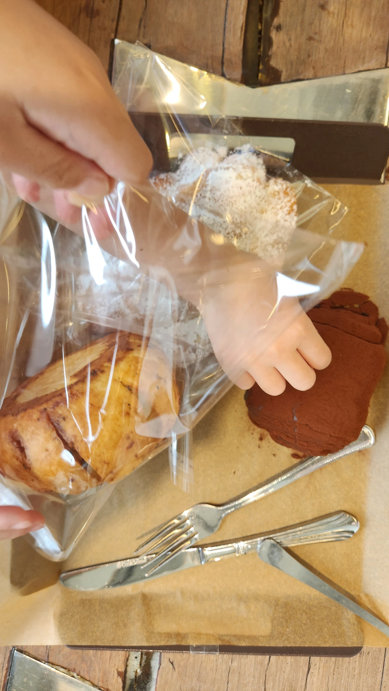보기 좋게 빵과 커피를 세팅하기도 전에, 초콜릿 파우더가 한껏 묻은 빵으로 작은 손들이 가고