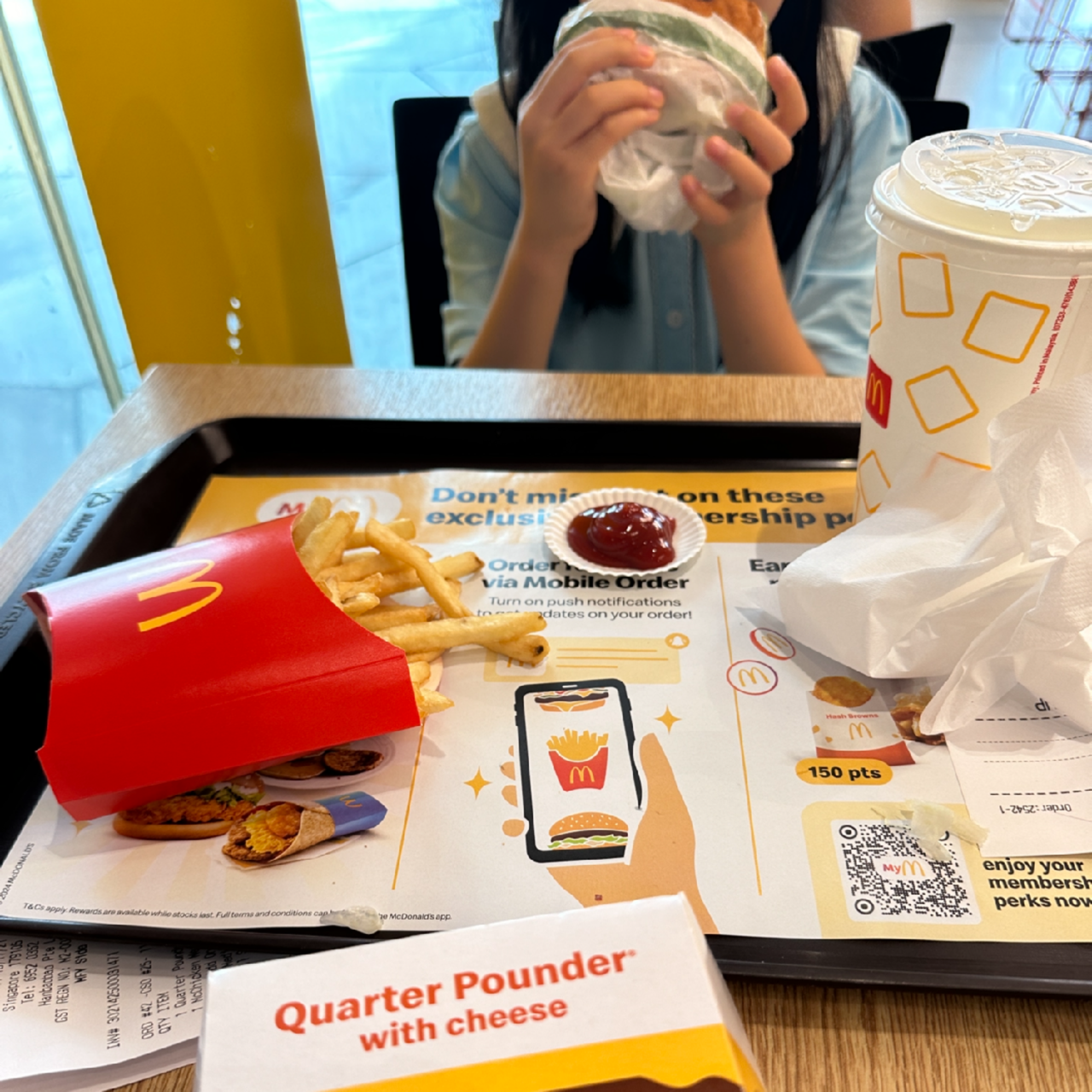 일단 정비를 한번 하고, 밥부터 먹기로 했다. 싱가포르에 맛집 추천을 찾으니 참 많은 곳들이 나왔는데, 우리는 놀랍게도(?) 쇼핑몰 입구에서 봤던 맥도날드를 갔다. 물론 뚜의 선택이었다. 여행 첫 끼가 생각지도 못했던 맥도날드라니!