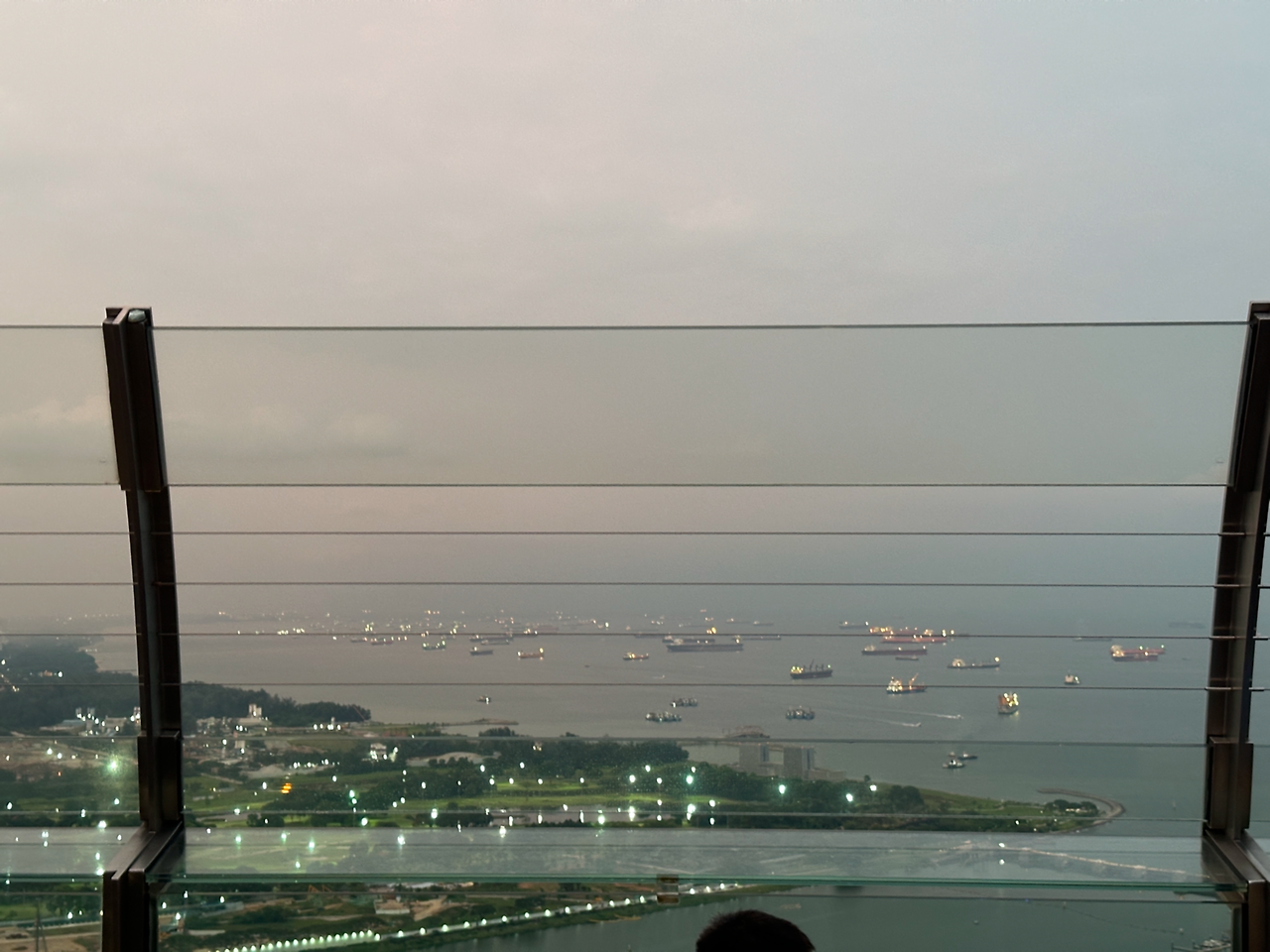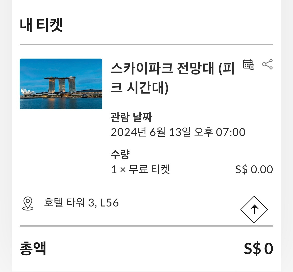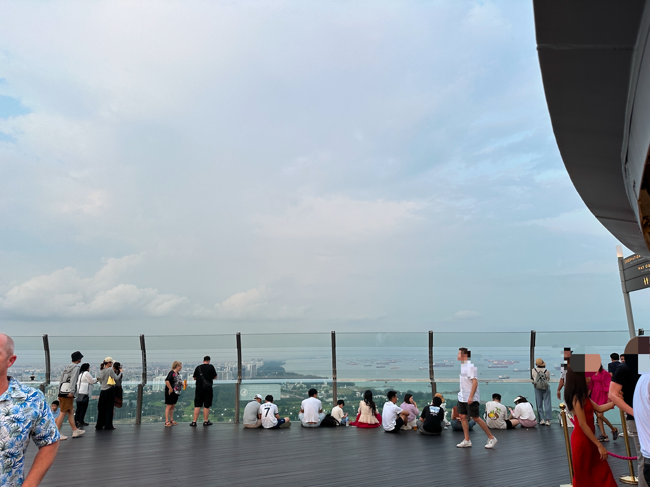 첫날 바샤커피를 사고 마리나베이 샌즈 멤버십을 업그레이드했더랬다. 그 후 앱을 열어보니 전망대 무료 쿠폰이 생겨있었다.(그러나 어른만 무료, 어린이는 유료 결제였음...) 낮 밤 언제 가도 좋다길래, 아예 노을 지는 시간을 노려 낮-밤 전부를 즐기기 위해 저녁 7시에 예약을 해놨다.