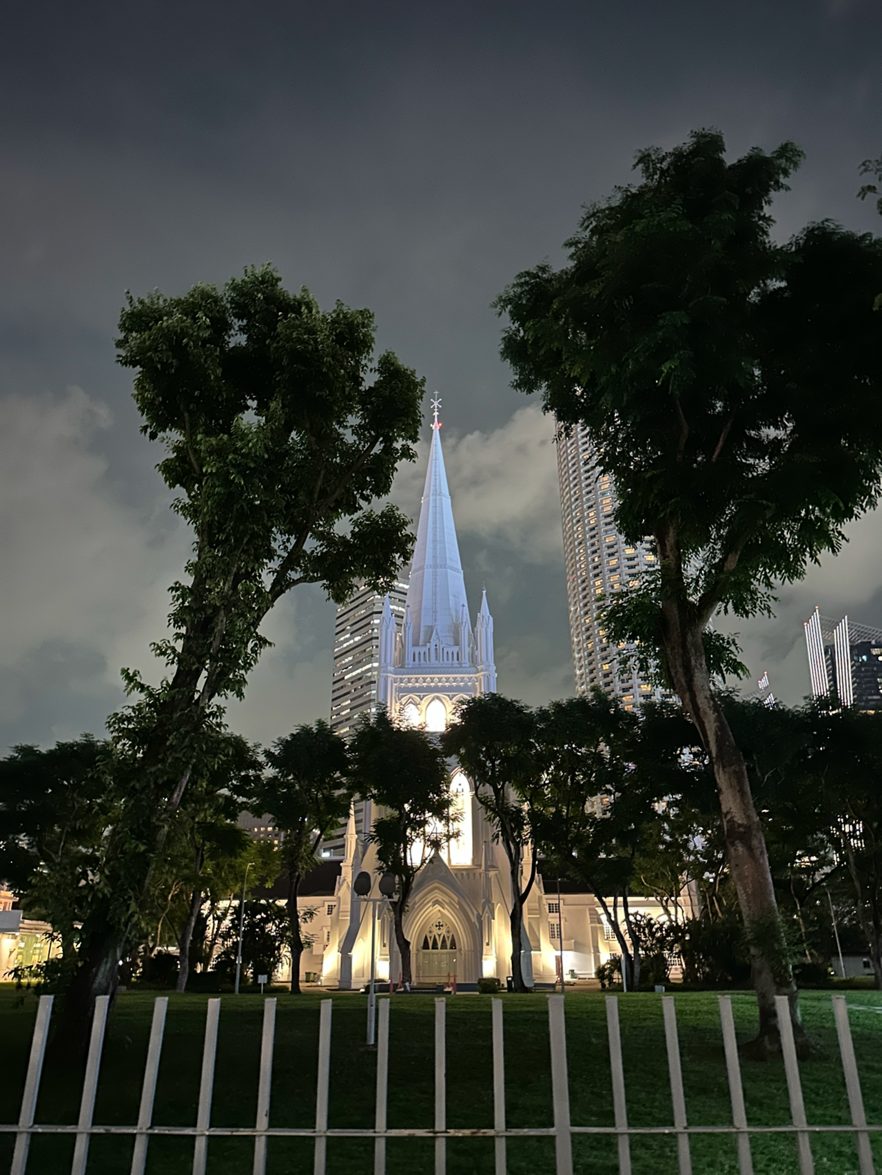 동물원 이후로 밖에서 처음 만난 주스자판기다. 하나 뽑아 마시니 마음이 한결 나아졌다. 뚜와 나눠 마시며 모퉁이를 도는데, 옆에 하얗고 예쁜 건물이 하나 나왔다. 구글에 찍어보니 세인트 앤드류 성당이었다. 입구가 잠겨 있어 바라만 봤지만, 멀리 호텔 분수쇼에서 들려오는 웅장한 노래와 함께 성당 건물을 바라보니 분위기가 차분하니 참 잘 어울렸다. 그래도 괜찮아, 위로받는 느낌이었다.