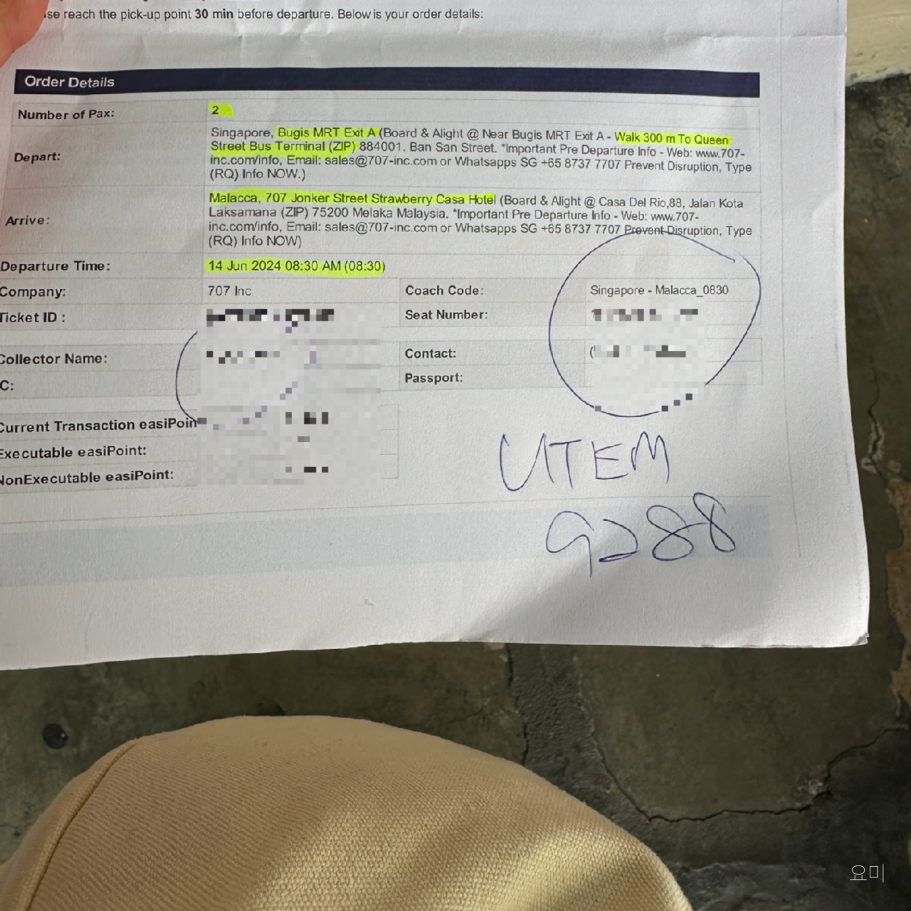 예약 확인에 버스 번호까지 받으니 이제야 긴장이 조금 풀렸다. 숨을 돌리며 주변을 둘러보니 우리말고도 말라카행 버스를 기다리는 팀들이 많았다. 특히 중국인이 많았고 혼자 여행하는 외국인들도 많았다.