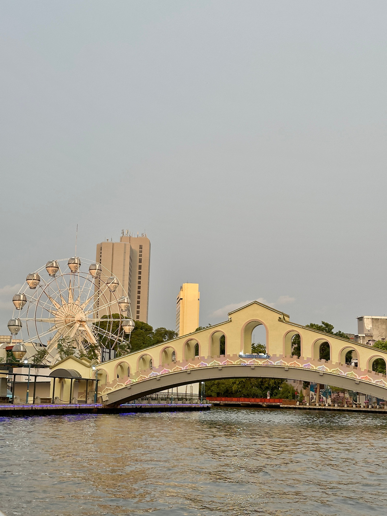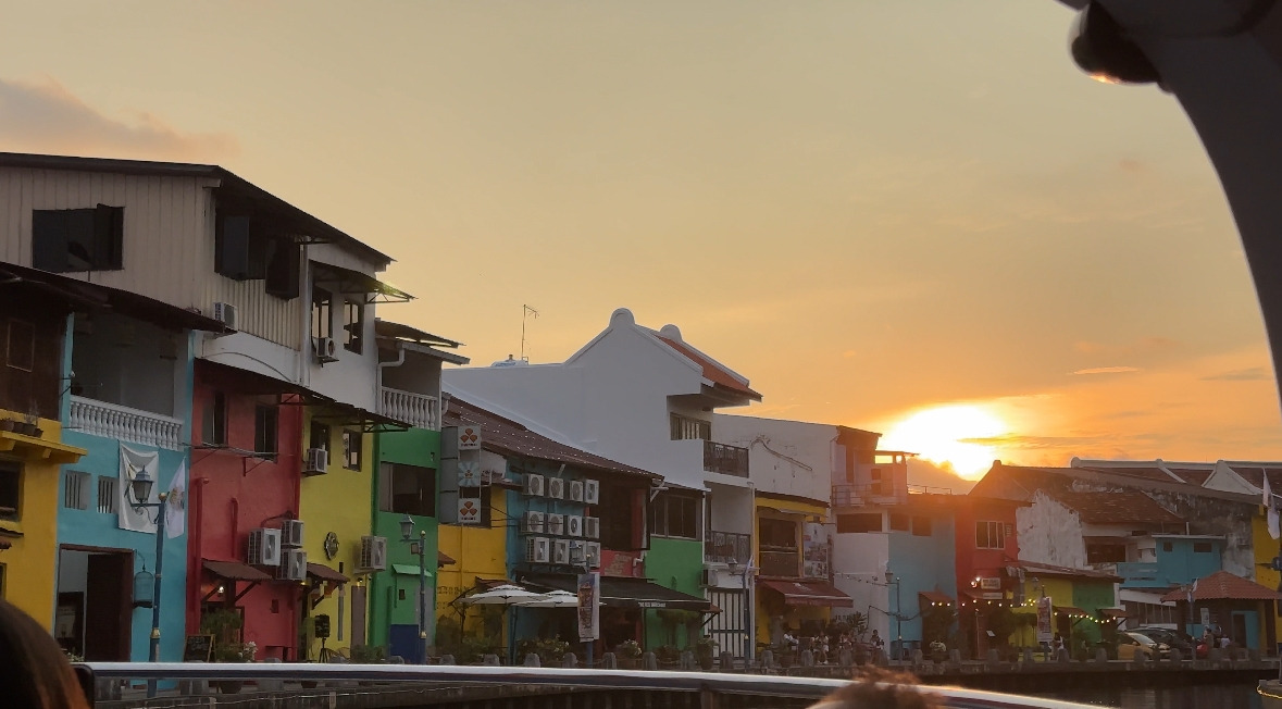 그 많은 날 중 딱 하루, 오늘 머무르는 말라카에서 이렇게 연달아 특별한 이벤트가 생기니 흥분이 가라앉지 않았다. 부푼 마음으로 감상을 해서 그런지 리버크루즈는 운행 내내 벅찰 만큼 아름다웠다. 막 노을이 지기 시작한 시간이라 배가 나아가면서 점점 건물 사이로 떨어지는 해가 매우 낭만적이었기 때문이다. 저녁 크루즈만 생각했던지라 이런 주홍 필터가 씌워진 풍경을 예상하지 못했다. 누군가 말라카에 온다면 꼭 노을 시간에 리버크루즈를 타라고 추천하고 싶다.