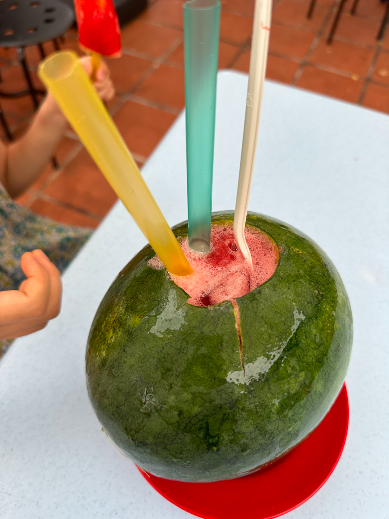 네덜란드 광장의 메인 다리 근처에는 사람이 끊이지 않는 가게가 하나 있다. 여긴 큰 박스 안에 멜론만 한 수박들을 가득 넣어놓고 주문과 동시에 수박을 갈아 수박 주스를 만들어준다. 현란한 제조 솜씨를 멍하니 구경하던 뚜가 내 옆구리를 쿡 찔렀다. 자기도 먹고 싶었나 보다.