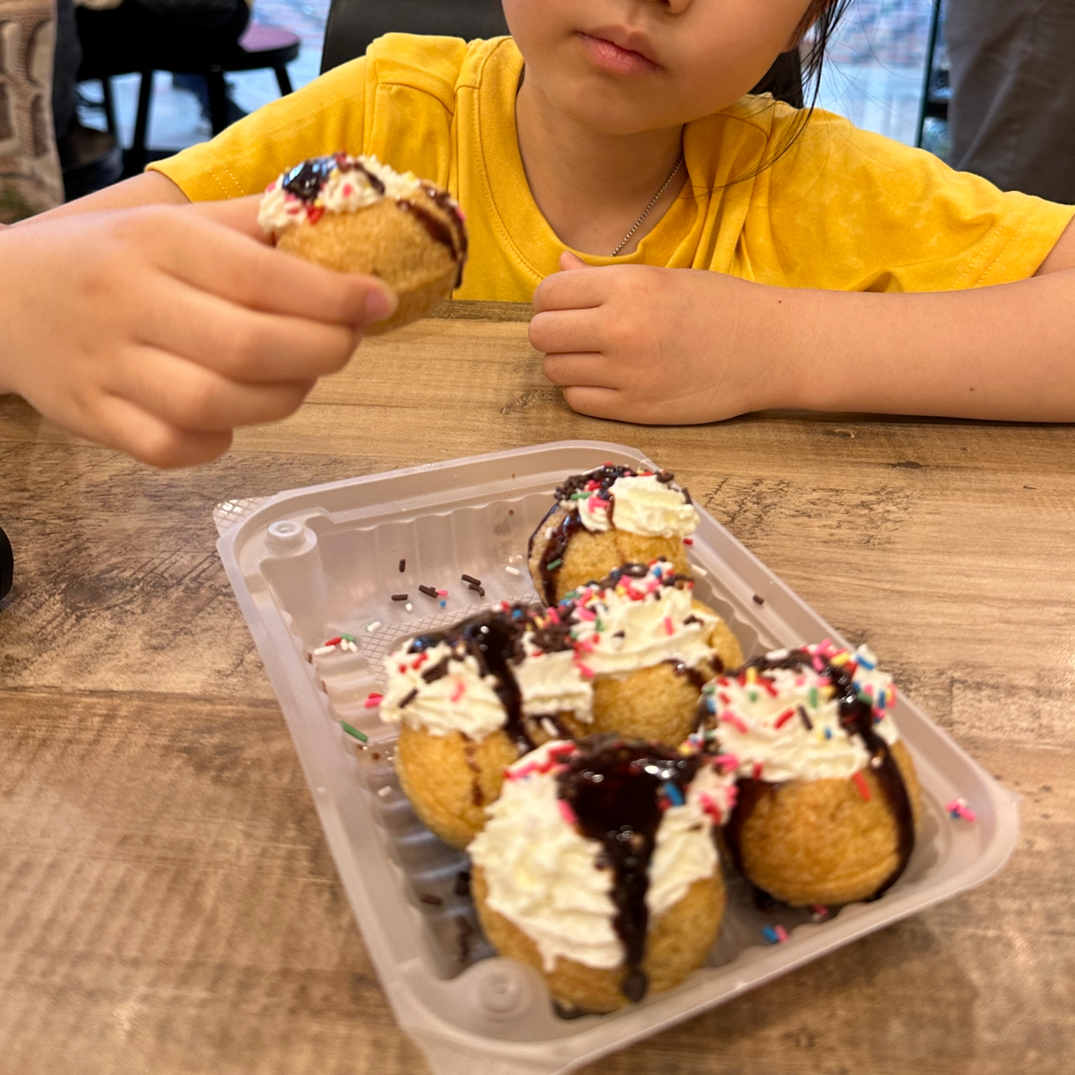조심히 밑으로 내려와, 이대로 차를 타기엔 시간이 많이 남아서 아깝길래 옆에 건물을 구경하기로 했다. 멀리서 보니 식당도 있는 것이 아무래도 방문객을 위한 곳 같았기 때문이다. 비를 피하는 많은 사람들을 헤집고 상점들을 구경하다 어떤 작은 음식점을 들어가 간식을 사 먹었다. 슈 위에 크림이 얹어진 디저트와 커피를 마셨는데, 맛은 특별하지 않았으나 비 때문에 어수선한 분위기 속에서 무엇 때문인지 은근하게 시선을 받는 상황은 좀 특별했다.