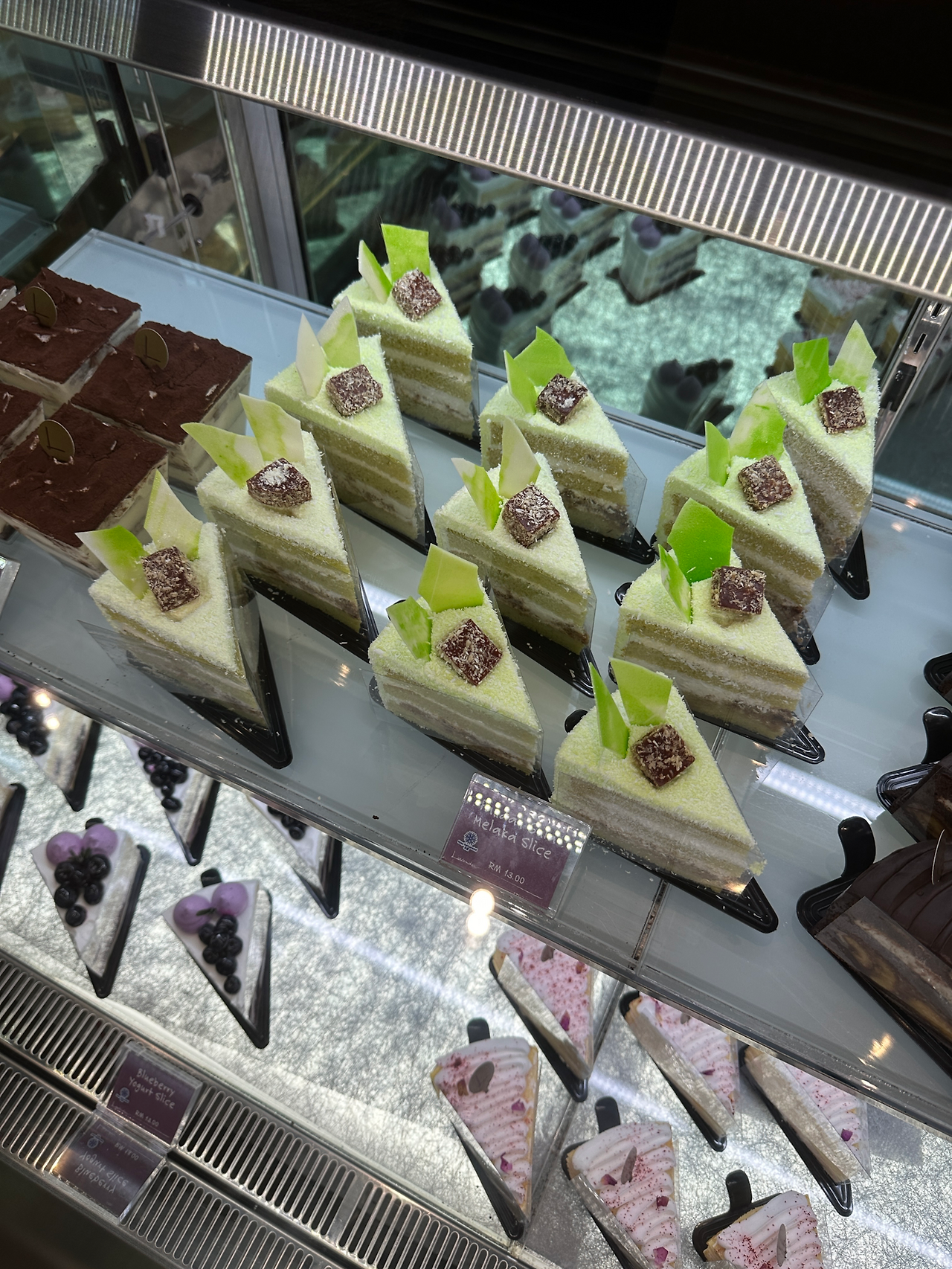 수리아몰을 찬찬히 구경하다 숙소로 향하는 길, 여러 제과점에 들러 디저트를 구경했다. 판단잎을 이용한 색다른 빵과 디저트가 있어 흥미로웠다. 게다가 우리나라의 디저트 가격과 비교하면 정말 착한 가격이다. 디저트 러버인 나는 홀린 듯이 쟁반에 달달구리들을 담았다. 이만큼을 담아도 우리 돈 만원이 되지 않았다. 디저트 한가득에 아이스라테까지 사서 숙소로 돌아오니 새삼 또 세상을 다 가진 기분이 들었다. 맛은 우리나라 수제 디저트보다는 덜했지만 다른 나라에서 먹는 빵이라는 자체로도 특별했다.