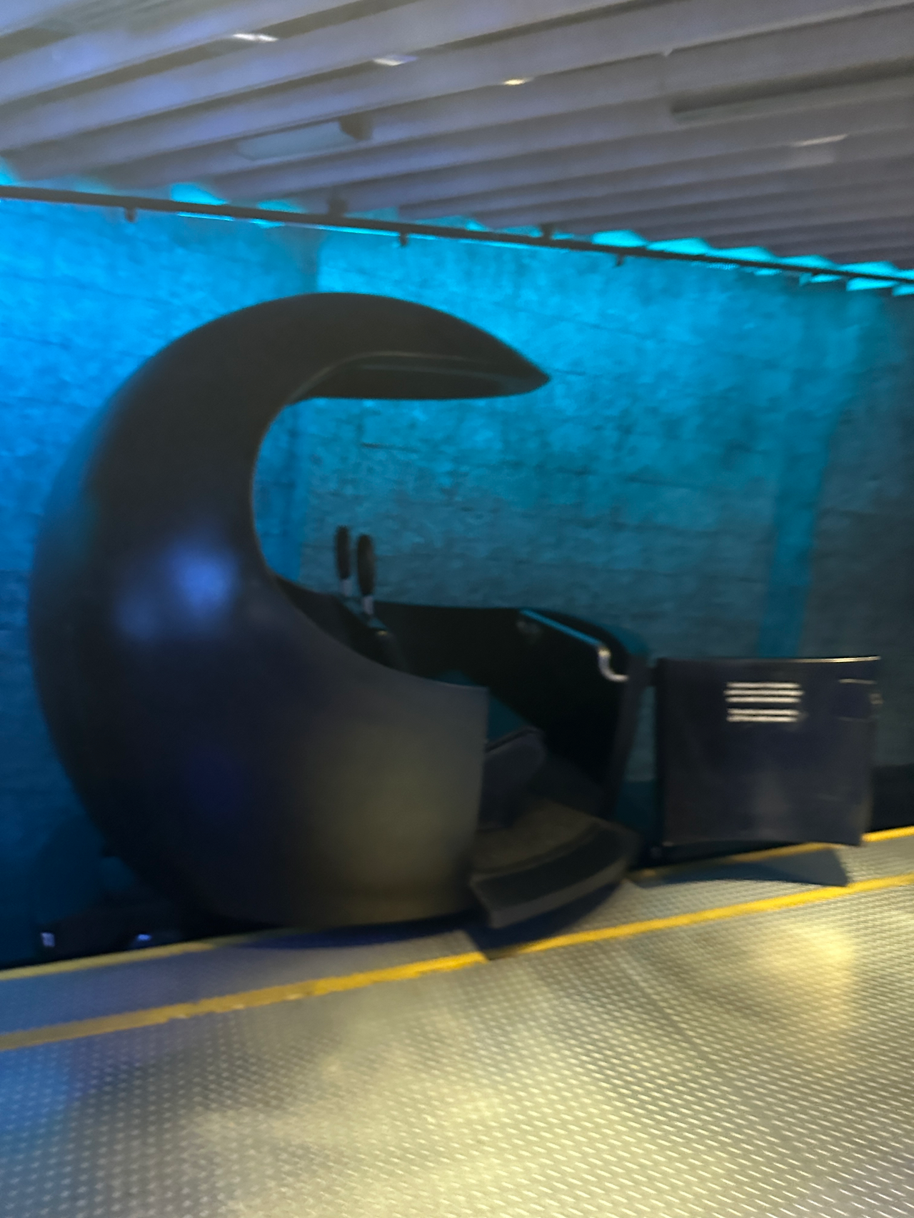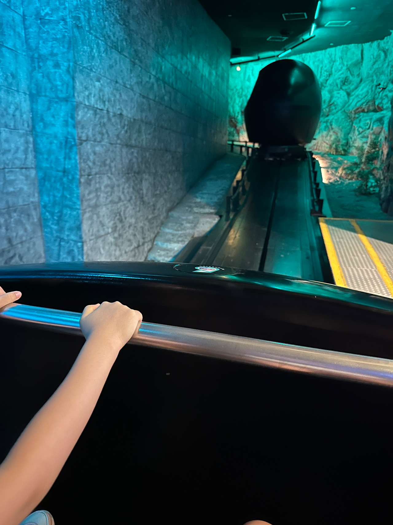 제일 먼저 에너지캡슐을 탔는데 이게 금방 매진된다고 할 정도로 인기가 많다길래 기대를 했었다. 입장권을 보여주고 들어가 보니 검은색 캡슐 형태의 기구를 타고 천천히 나아가며 과학의 과거부터 미래까지에 이르는 영상을 관람하는 체험이었다. 이름만 보고 상상하던 것과는 달랐지만 볼만한 영상과 분위기 있는 조명, 캡슐의 다양한 움직임 덕에 꽤 집중하는 시간을 보냈다. 영어로 설명이 나오는데 어렵지 않아서 뚜도 충분히 알아들을 수 있었다고 한다.