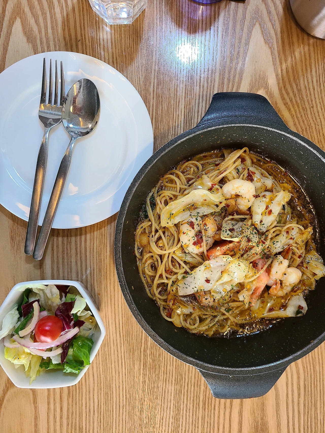 오늘은 혼자 점심을 먹었어요. (사실 자주 그래요.) 점심값으로는 살짝 부담스러워 조금 한산한 사무실 근처 파스타집 구석자리에 앉아 한없이 느리게 먹었습니다. 만석이 아니라 그럴 수 있기도 했지만..