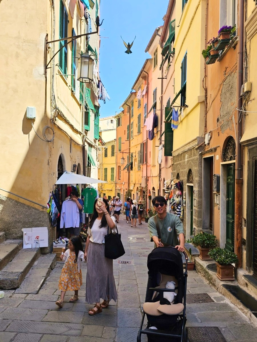 마치 <콜 미 바이 유어 네임>의 한 장면을 보는 듯했다. 낑낑거리며 무거운 캐리어를 끌고 몇 층을 올라간 작은 호텔방의 창밖으로, 티셔츠를 벗은 채 축구를 하고 있는 이탈리아 소년들이 보였다. 그 뒤로 잔잔한 포르토 베네레 항구에 정박한 새하얀 요트들이 그림처럼 펼쳐졌다. 호텔 방에 달린 앙증맞은 테라스를 연신 들락거리며, 아이가 이탈리아 소년들을 향해 손을 흔든다. 산책을 서두른다. 햇살의 온기가 남은 이 어여쁜 마을을 구석구석 걸어보자.
