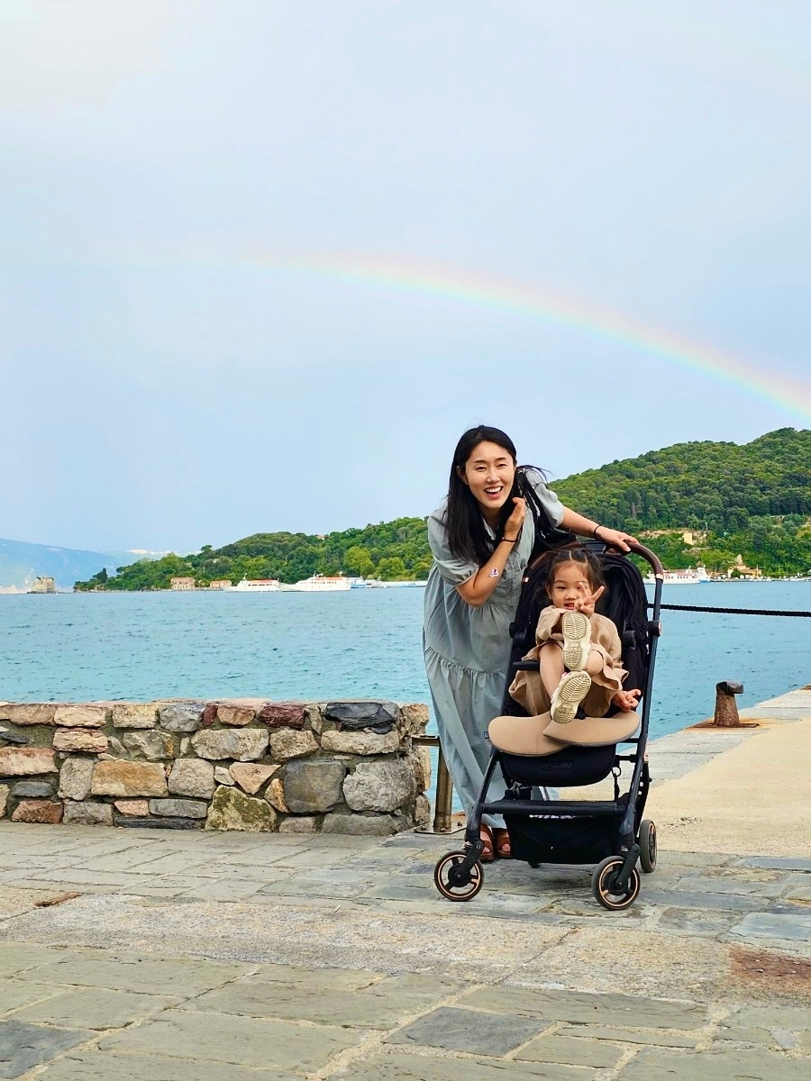 아이가 웃는다. 사진을 찍자 하니, 브이도 한다. 비가 지나가 깨끗해진 공기 사이로, 일곱 빛깔의 무지개를 눈에 담는다. 엄마가 이야기하던, 그 선명한 무지개가 꼭 이랬을까. 그곳에 그대로 있어주어 고마운, 우리가 이 땅을 살아가는 동안 잠시 머물 수 있게 해 주어 고마운, 수많은 어딘가. 그곳에 머무는 순간, 우리는 더없이 행복했다고, 선물처럼 함께해 준 햇살과 바람과 파도에게, 그리고 무지개에게 또 우리가 걸었던 좁은 골목들에게, 우리에게 인사를 건네준 다정한 누군가에게, 우리는 나지막이 고마운 마음을 실어 보낸다. 여전히, 아이의 방 한 켠에 걸려 볼 때마다 정다웠던 그곳을 떠오르게 하는 앙증맞은 가방에게도.