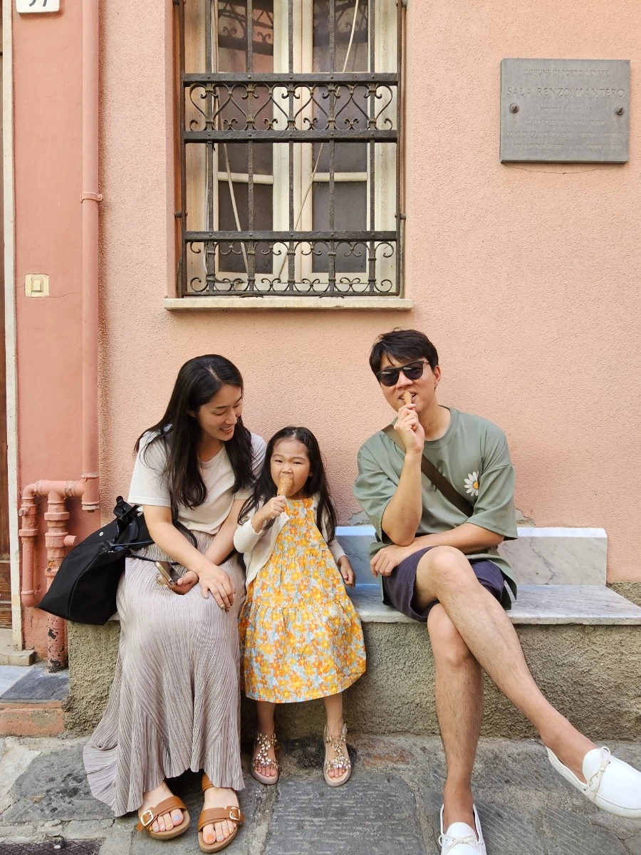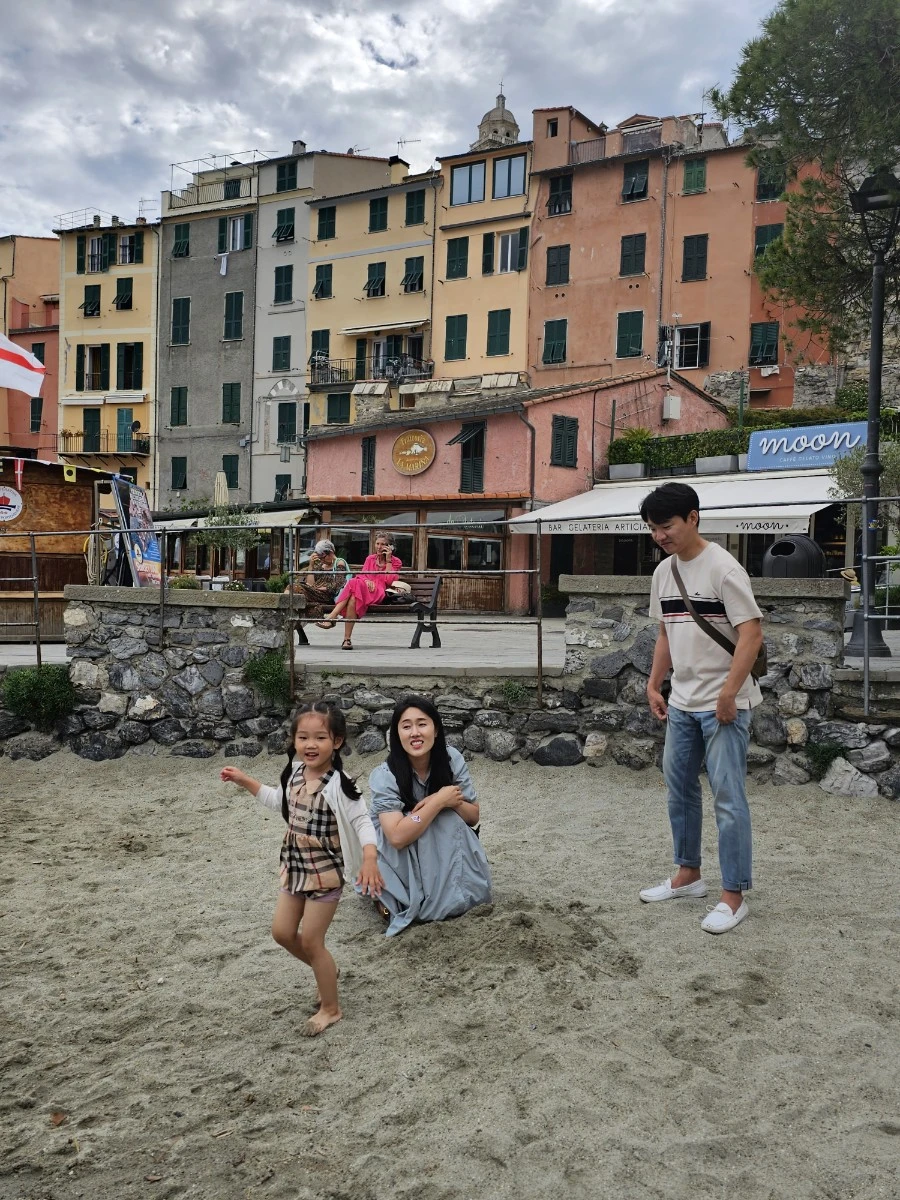 여행 한 달쯤 전, 우리는 엄마, 아빠가 되기 전, 그러니까 꽤나 자유롭게 여행하던 시절 우리가 잠시 머물렀던 해안가의 작은 마을을 떠올렸다. 미지근한 바닷물이 파도를 타고 발끝을 적시는 어여쁜 해안과 절벽을 따라 옹기종기 붙어있는 파스텔톤의 자그마한 집들, 산비탈을 가득 메운 포도와 올리브밭이 다섯 개의 작은 마을을 손님들로 북적이게 하는 곳.