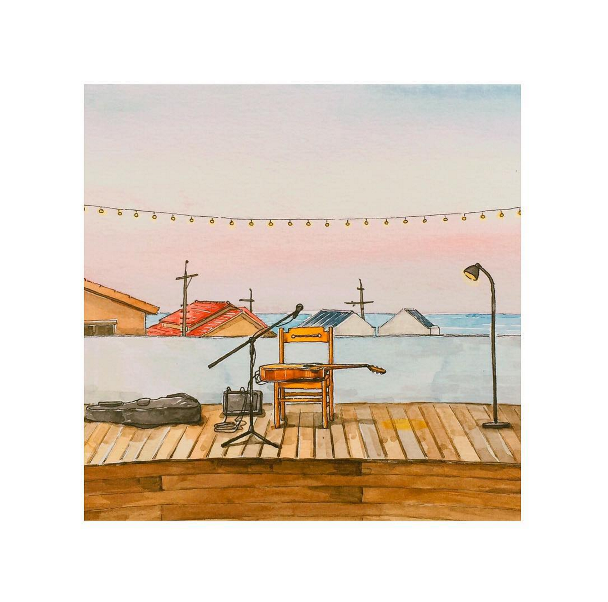옥상에 마련된 작은 무대 위엔 기타 하나가 놓여있었다.