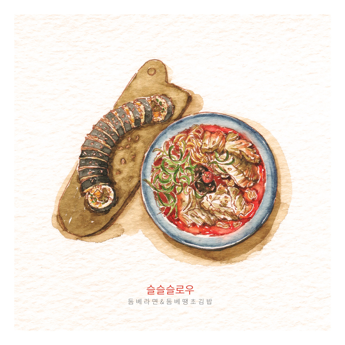 팔각 등의 향신료를 더한 듯 하다.목젓을 때리고 넘어가는 얼얼한 돔베땡초김밥 또한 별미.