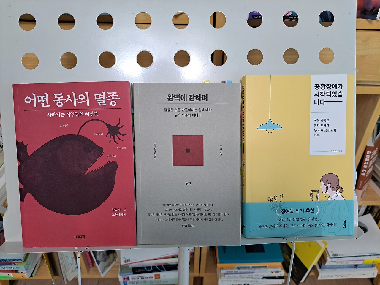 인문, 철학, 사회 분야에서는 <깻잎 투쟁기>와 <어떤 동사의 멸종> 그리고 <완벽에 관하여>를 선정했습니다. 사실 철학 분야에서 재밌게 읽은 책들이 있었는데 (가령, 알랭 드 보통의 <철학의 위안>이라든지 <소크라테스 익스프레스> 같은 책들) 이 책들이 워낙 유명한 책이고 잘 알려진 베스트셀러라 다른 분들이 많이 추천했을 거라 생각해서 저는 조금 덜 알려져 주목을 더 많이 받으면 좋겠다는 생각을 한 작품에 우선권을 주었습니다.