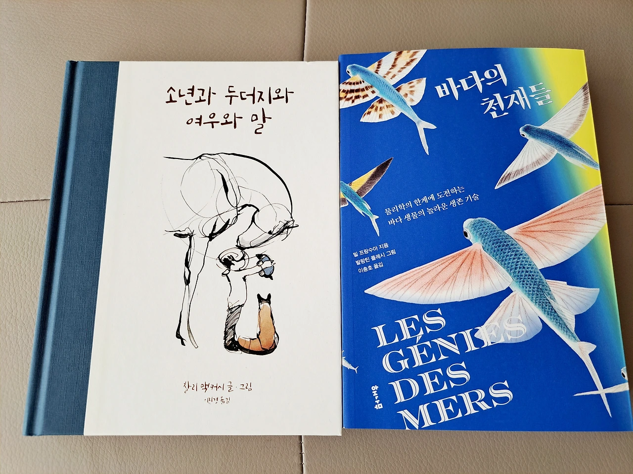 소장용 추천도서로는 우화 그림과 글 어느 한 쪽 버릴 곳이 없는 책 <소년과 두더지와 여우와 말>과 바다 해양 생물의 놀라운 글과 찬란한 그림이 눈을 유혹하는 <바다의 천재들>입니다. 두 권 다 리뷰를 작성했기 때문에 찾아보면 제 글을 읽을 수 있습니다.
