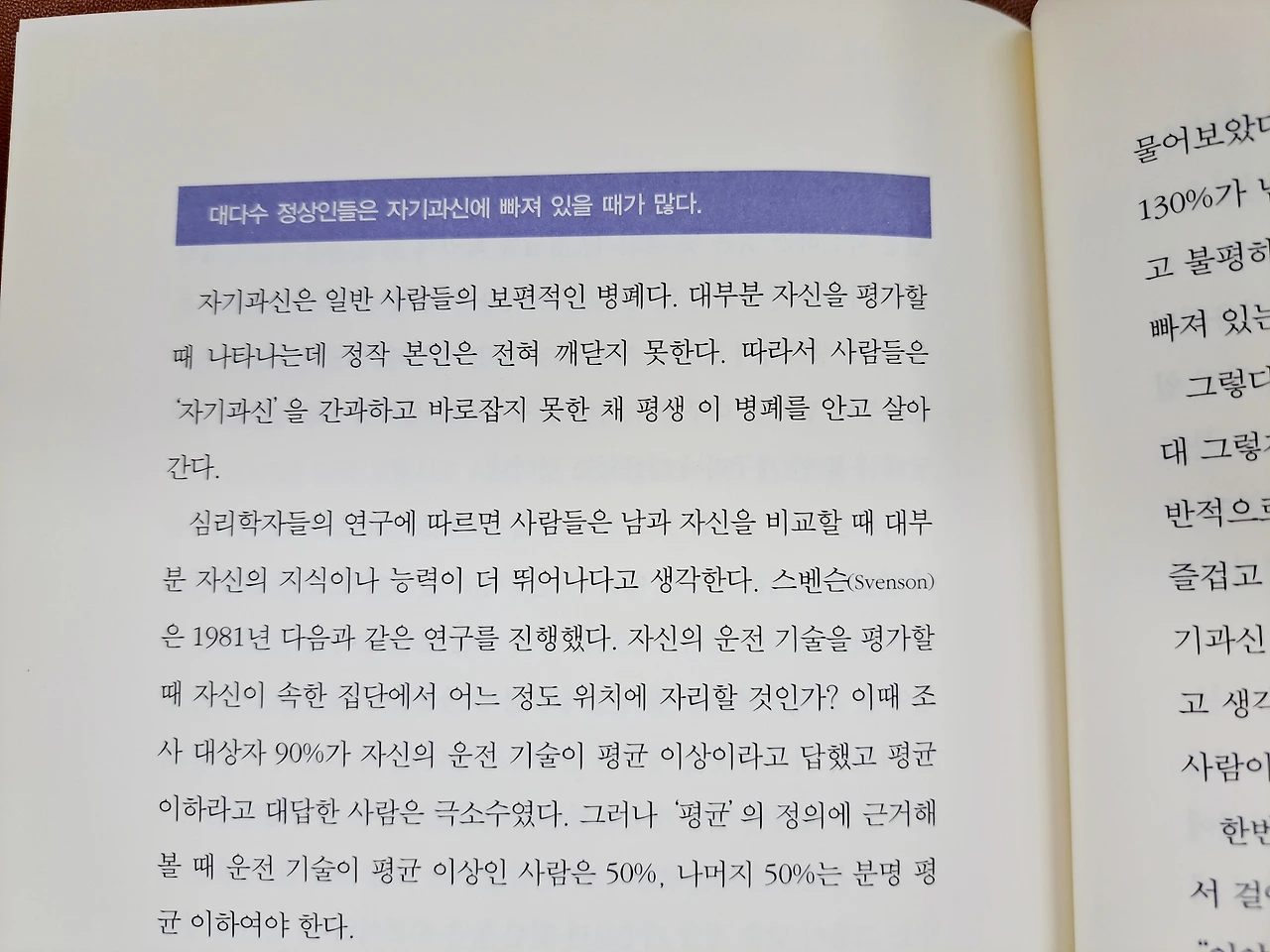 자기과신의 가장 큰 장점은 자기신뢰다. 자기과신이 끊임없이 긍정적이고 유효한 영향을 준다는 것이다. 놀랍게도 이 글을 읽으며 생각해보니, 자기과신의 긍정적 효과를 가장 많이 받은 사람이 바로 지금 이 글을 쓰고 있는 '내'가 아닌가 하는 생각이 든다.