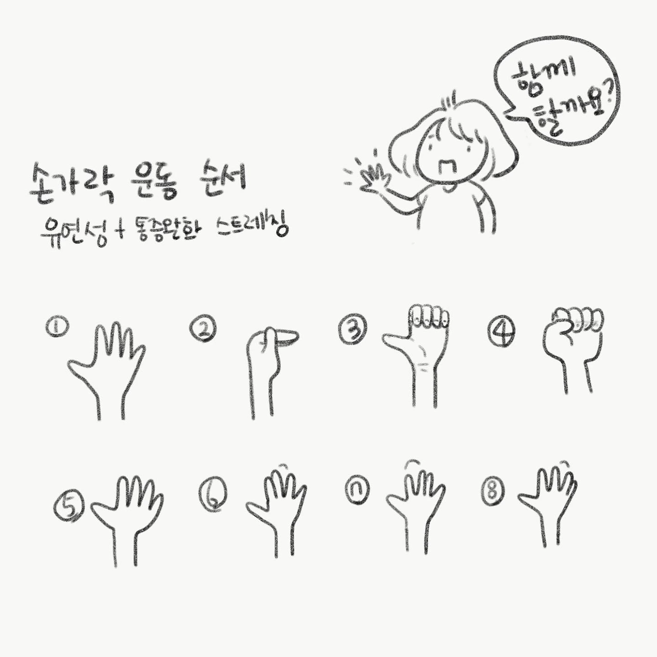 *아래 손가락 스트레칭 따라 해 보세요. 시원하고 유연해져서 움직임이 편해져요~