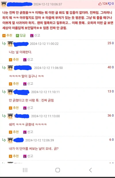 하지만 이 ‘긁?’ 문화는 단순히 싸움을 일으키는 도발이 아니라, 누군가의 감정을 알아보고 교감하고자 하는 사회적·문화적 현상일 수도 있습니다. “너는 과연 이 말에 얼마나 예민해질까?”라고 떠보는 심리 말이죠. 중요한 건 그 선을 지키는 겁니다. 말로 긁고 긁히는 걸 완전히 없앨 수는 없겠지만, 우리가 무심코 뱉는 한 마디가 누군가에게 영영 아물지 않을 상처가 되지 않도록, 서로 조금씩 조심하고 헤아리는 태도가 필요하지 않을까요?