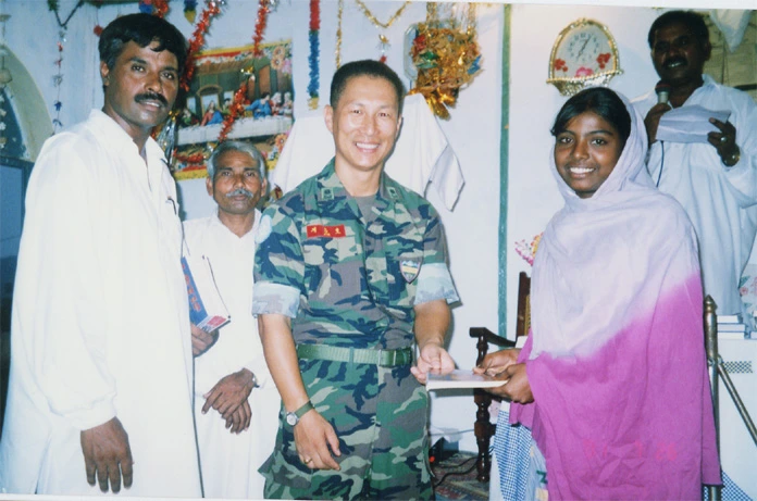 크리스마스를 맞아 그곳을 방문해서 아이들에게 공책과 연필을 선물로 주었다.