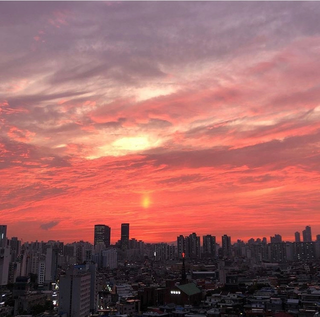 어느 날, 인스타그램에 창밖으로 본 일출 사진을 올렸다. 친구 아내가 댓글을 달았다. “일몰이 참 멋지네요!”
