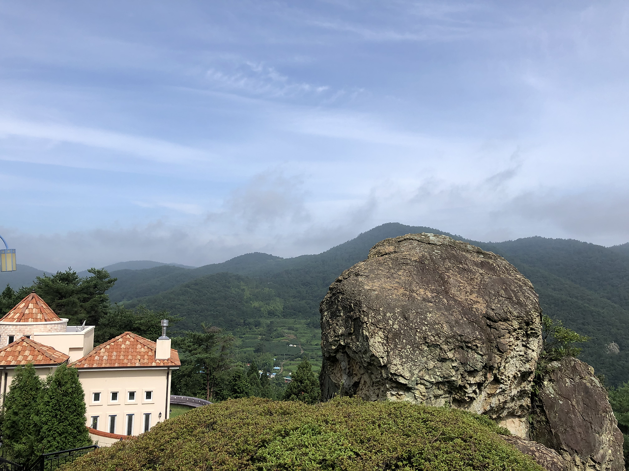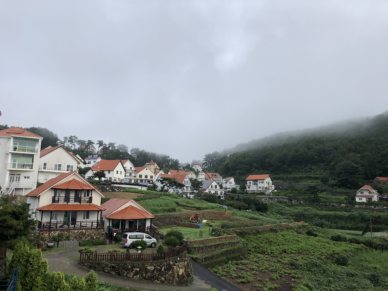두 번째 에피소드다. 숙소에 여장을 풀고 야외 테이블에 앉아 두런두런 이야기를 나누었다. 말벌 두 마리가 윙윙 거렸지만 크게 거슬리진 않았다. 우리가 먼저 도발하지 않으면 그것들이 달려들지 않을 테니까. 산 중턱의 시골 마을답게 금방 어둠이 몰려왔다. 아내가 먼저 샤워실로 들어갔다. 몇 분 뒤에 갑자기 전기가 나갔다. 아내는 어둠 속에서 샤워를 해야 했고, 주인은 전화를 받지 않았다. 수차례 전화를 건 후 연결된 주인아주머니의 말씀, “정말 미안한데 산책 나가신 아저씨가 돌아오셔야 고칠 수 있어요.” 우리는 이것도 또 하나의 추억이라고 얘기하면서 기다렸다. 주인아저씨가 돌아와서 내려간 주차단기를 다시 올리자 전기가 들어왔다. 주인아주머니의 말씀, “방마다 모두 에어컨을 켠 상태에서 세탁 건조기를 돌려서 주차단기가 내려갔어요.” 헐~