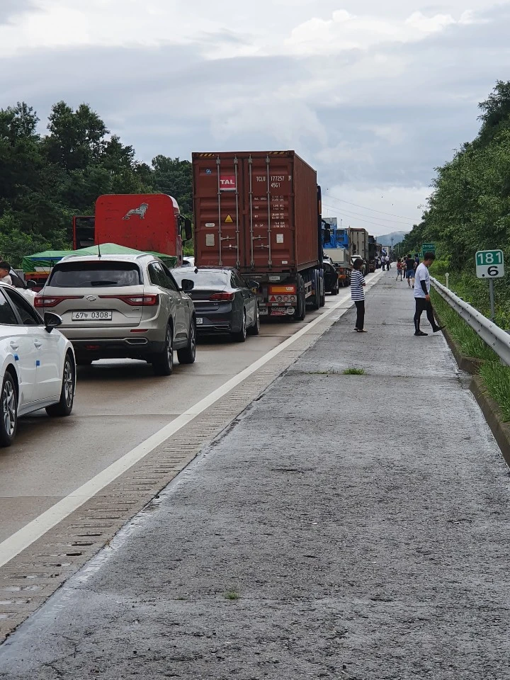 첫 번째 에피소드다. 여행을 떠나던 날, 장마전선의 북상으로 휴가 지역의 날씨가 좋을 것이라는 예보를 들었다. 부부 동반 여행이 처음이나 마찬가지라는 K 내외와 넷이 7080 노래를 흥얼대며 고속도로를 달리고 있었다. 충청도 지역에 접어들자 앞서가던 차들이 비상 깜빡이를 켜고 속도를 줄이더니 급기야 멈추었다. 고속도로상에서 시동을 끈 채 거의 세 시간가량 주차 상태로 있었다. 짜증이 날 법도 하지만, 모두가 일성으로 이것도 추억이라며 커피를 마시며 담소를 나누었다. 비가 그친 후의 쾌적한 날씨가 분위기를 더 멋지게 만들었다. 좋은 사람들과 함께 하니 고속도로 주차장도 휴양지의 일부처럼 느껴졌다. 길이 뚫린 후에 보니 무너져 내려서 도로를 막았던 엄청난 양의 토사를 제거하느라 두어 시간이 소요되었던 모양이다.