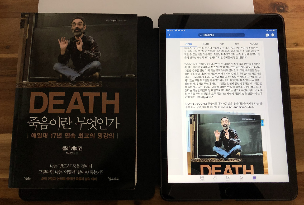 “사회적 거리두기”가 내 삶에 가져다준 유익도 있다. 외부 활동이 줄면서 책을 읽거나 예전에 쓴 독서노트를 들쳐 보는 시간이 늘었다. 몸의 근육량은 다소 줄었겠지만, 두뇌 활동은 더 활발해지고 사색의 깊이도 더해졌다. 코로나 블루를 극복하기 위한 나 스스로의 생존법이라고나 할까? [죽음이란 무엇인가]도 독서노트와 함께 다시 펼쳐 본 책들 중의 하나다.