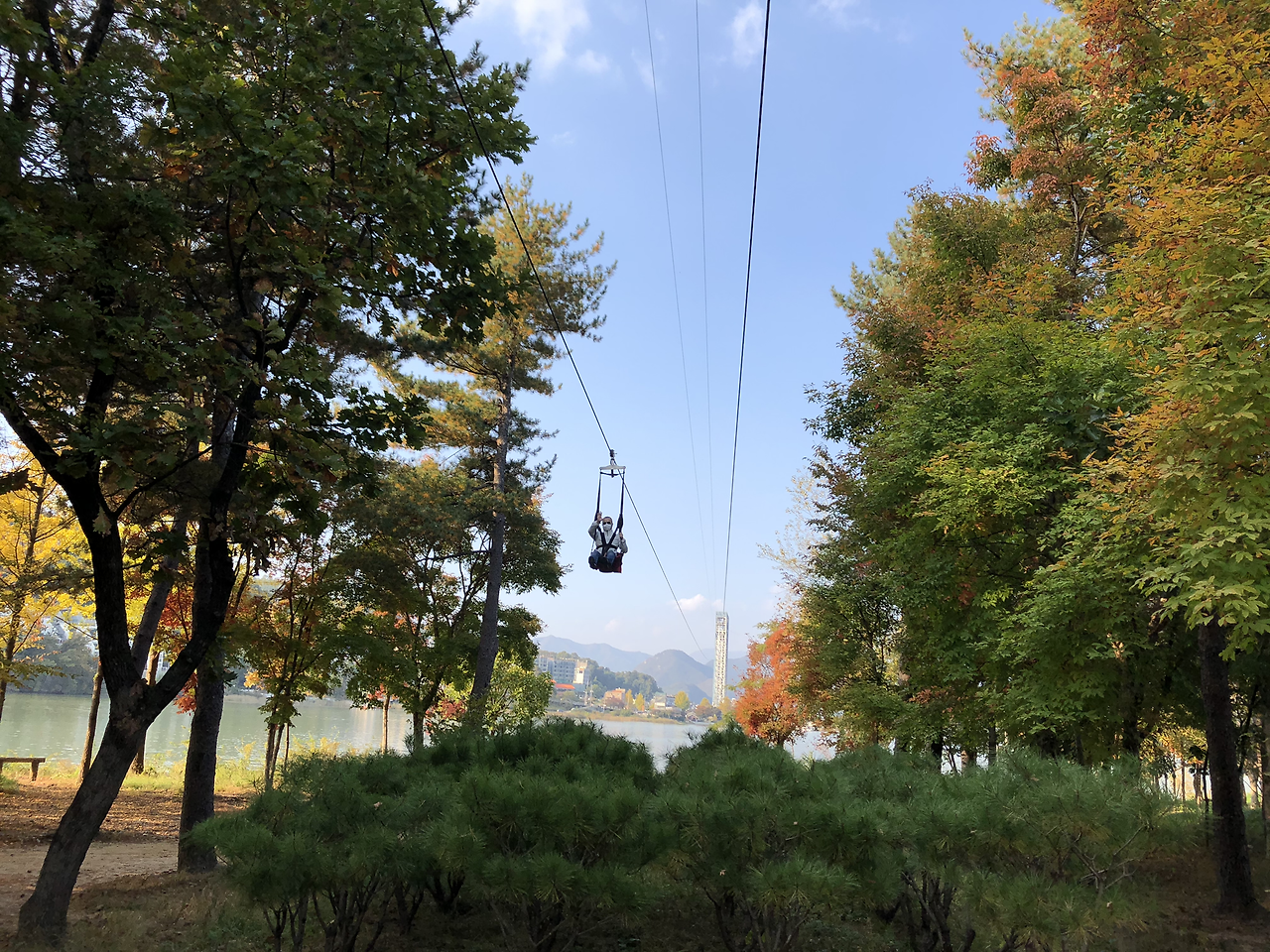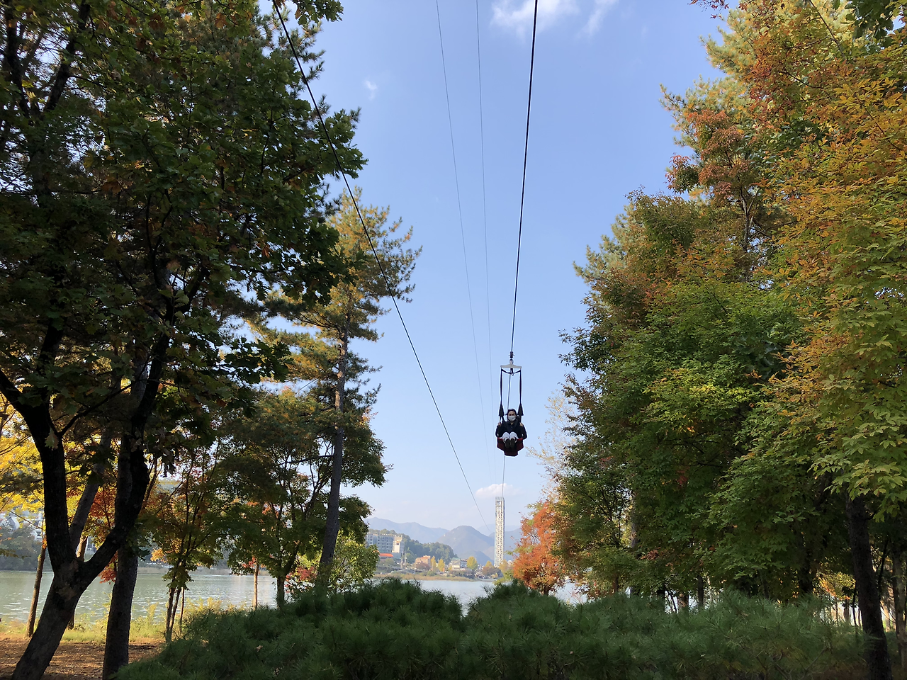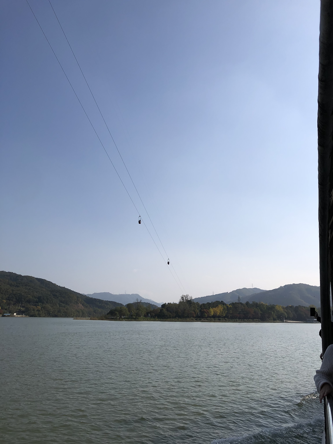 배를 타고 남이섬으로 들어간다. 짚라인을 타고 들어오는 다른 팀들이 보였다. 쒜엑 소리와 함께 휑하고 지나갔다. 그냥 탈 걸 그랬나?