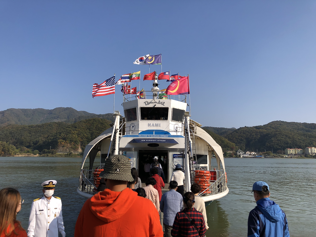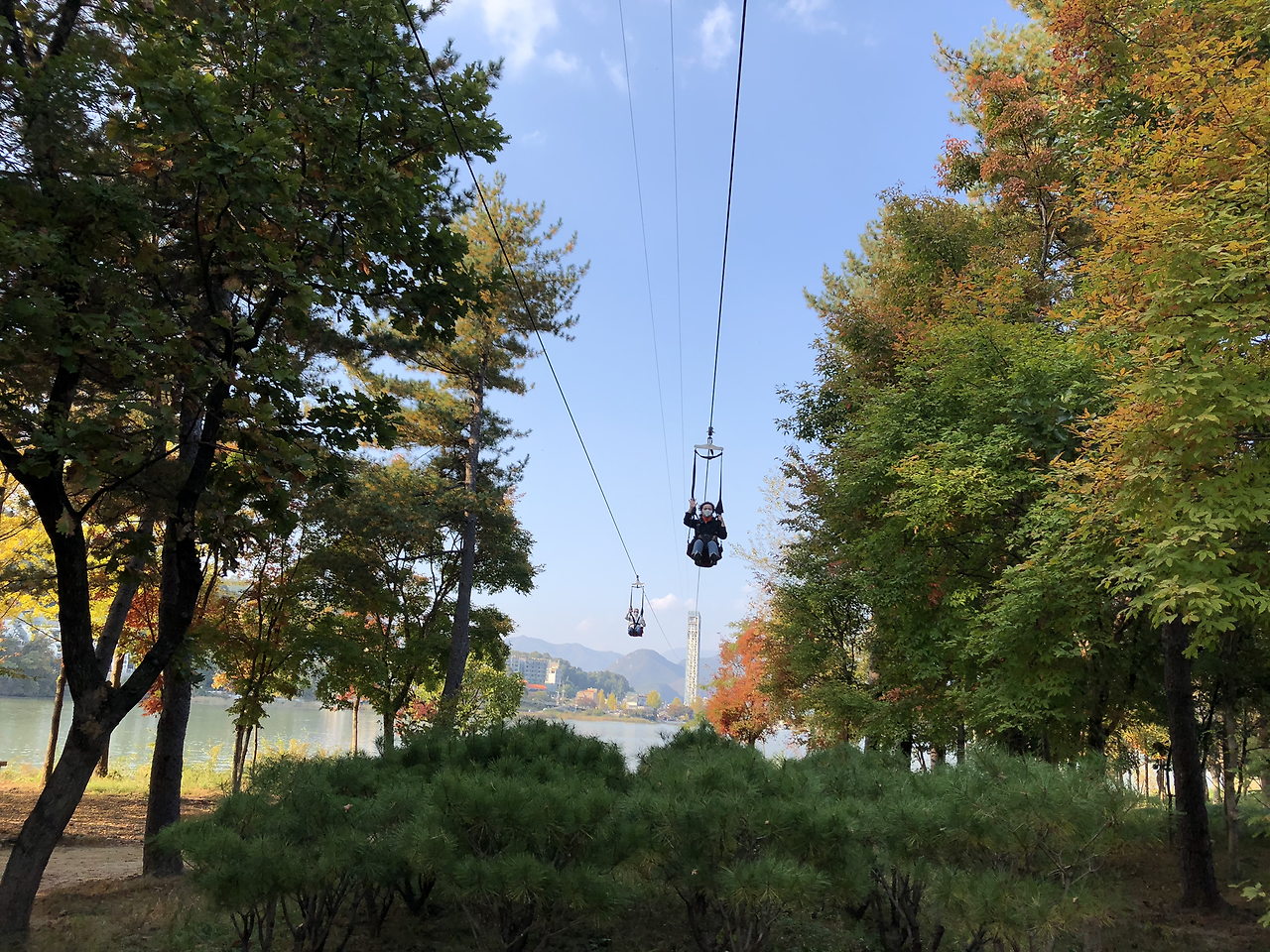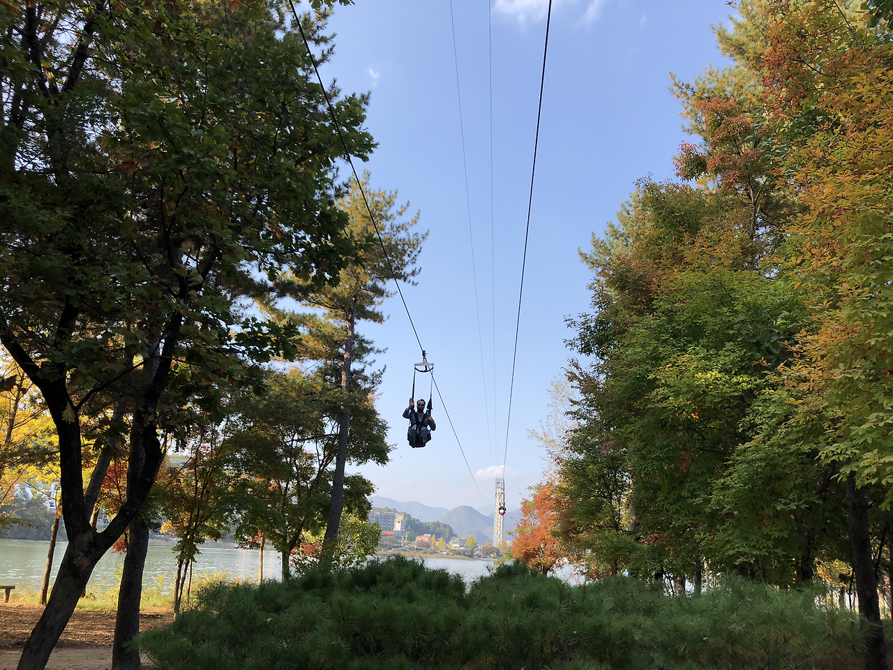 배를 타고 남이섬으로 들어간다. 짚라인을 타고 들어오는 다른 팀들이 보였다. 쒜엑 소리와 함께 휑하고 지나갔다. 그냥 탈 걸 그랬나?