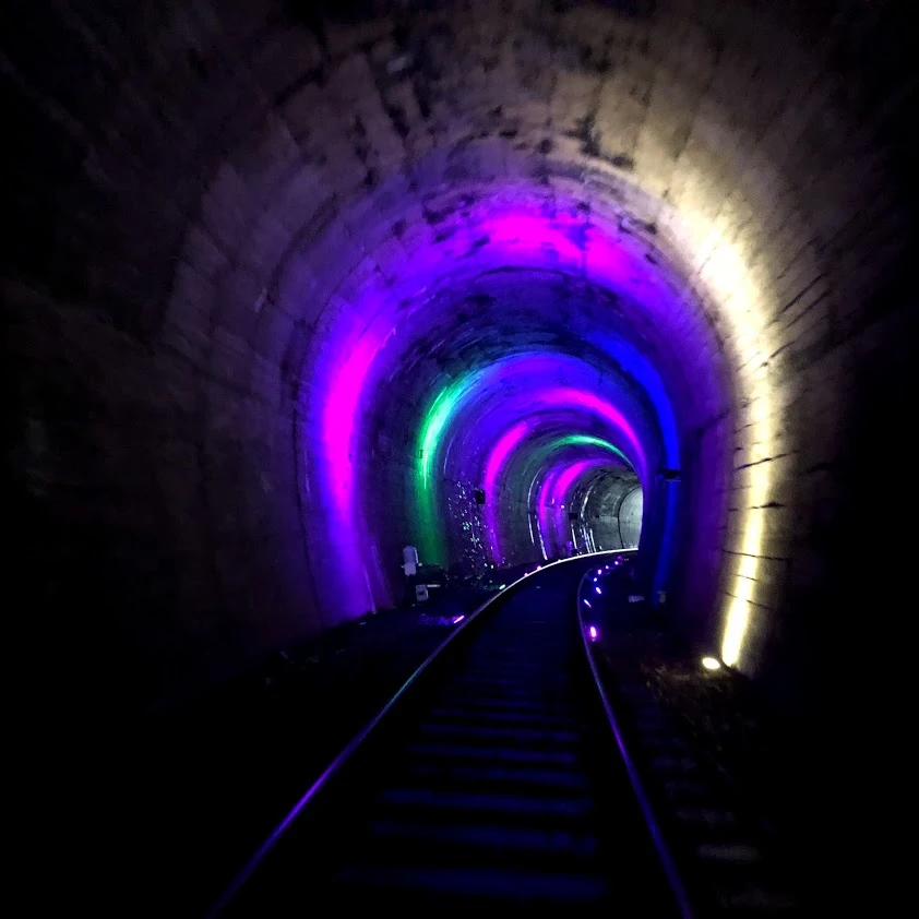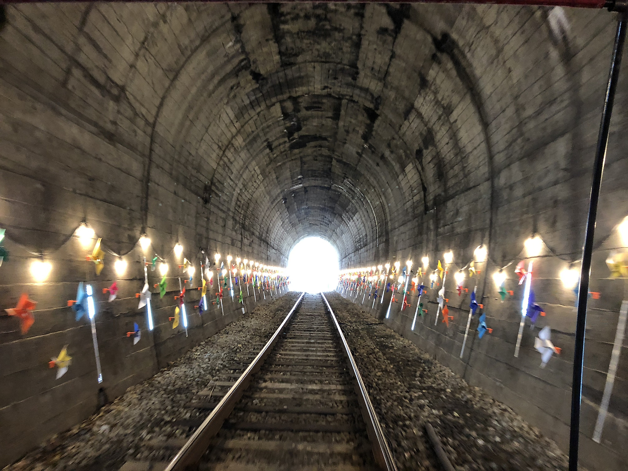 가을 들판을 따라 레일 바이크가 달린다. 넓은 들판에 누렇게 잘 익은 곡식이 황금물결을 이루고 있다. 어떤 곳은 이미 추수를 마쳤다. 다시 강변을 따라 레일 바이크가 달린다. 선선한 갈바람이 상쾌하다. 곧이어 터널 속으로 들어간다. 몇 개의 터널 속엔 관광객을 위해 온갖 시청각 장치를 해 놓았다. 나이트클럽을 연상시키는 번쩍번쩍 사이키 조명, 은하수를 떠오르게 하는 은은한 별빛, 데이트하는 커플을 위해 묘한 분위기를 연출해 주는 핑크빛 조명, 자연적인 어둠 속을 달리게 인공적 노력을 더하지 않은 터널, 그리고 그런 분위기에 어울리는 각종 음향... 아내도 덩달아 신이 나는지 몸을 흔들고 소리를 지른다.