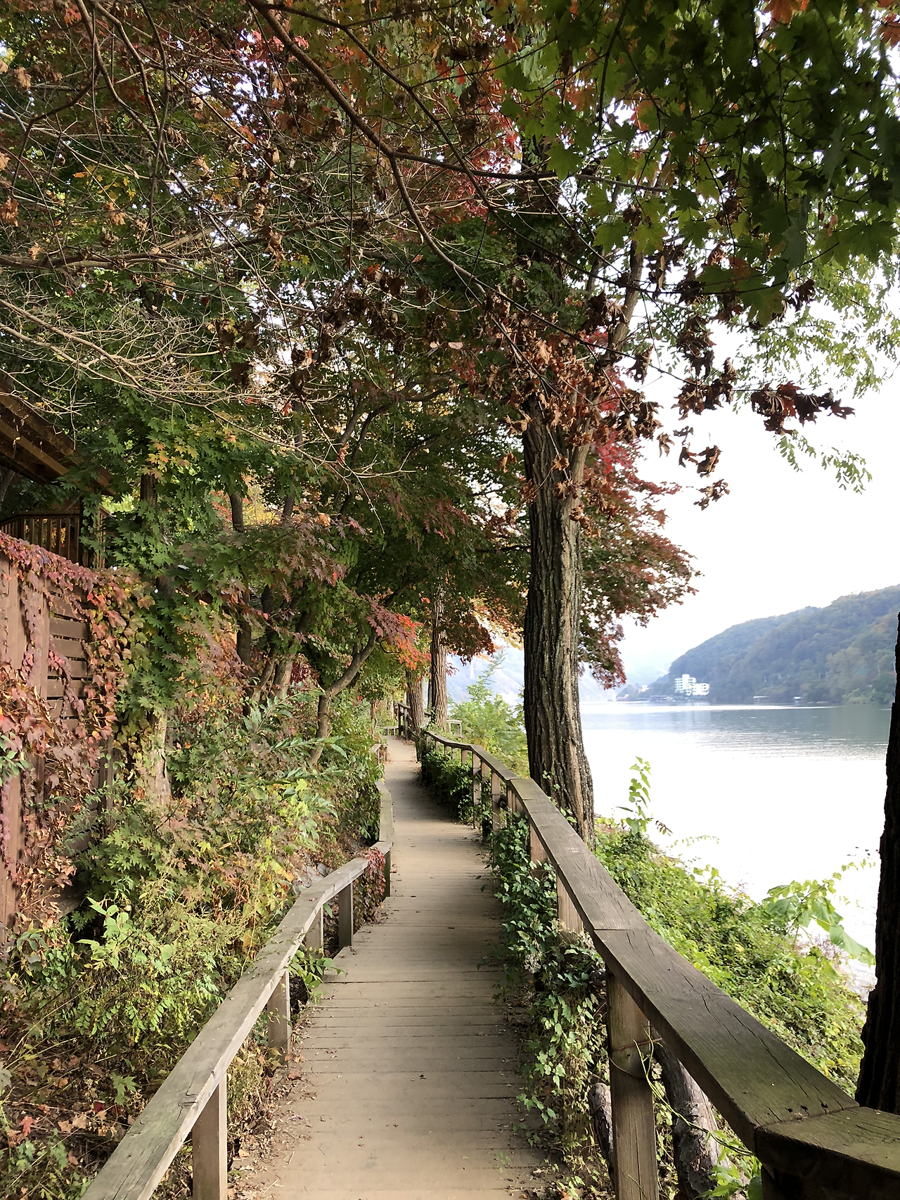 오후 일정에 따라 남이섬 주차장으로 이동했다. 남이섬에 들어가는 방법은 두 가지가 있다. 짚라인을 타거나 배를 타고 가는 것이다. 계획을 짠 친구는 모두 짚라인을 타고 들어가자고 했다. 하지만 나는 짚라인이나 번지 점프를 하는 것이 싫다고 했다. 군대에서 오랜 세월 동안 유격훈련과 공수훈련을 하면서 기진맥진할 정도로 반복했던 것을 다시 해야 하다니! 그것도 거금을 내고. 차라리 내게 돈을 주면서 하라고 하면 했지, 일부러 몇만 원씩 내고 그것을 하긴 싫었다. 내가 안 타겠다고 버티자 아내도 덩달아서 짚라인을 타는 것이 무섭다고 했다. 결국 우리 부부는 배를 타고 먼저 들어가서 짚라인 타고 들어 오는 두 친구 부부의 사진을 찍어 주기로 했다.