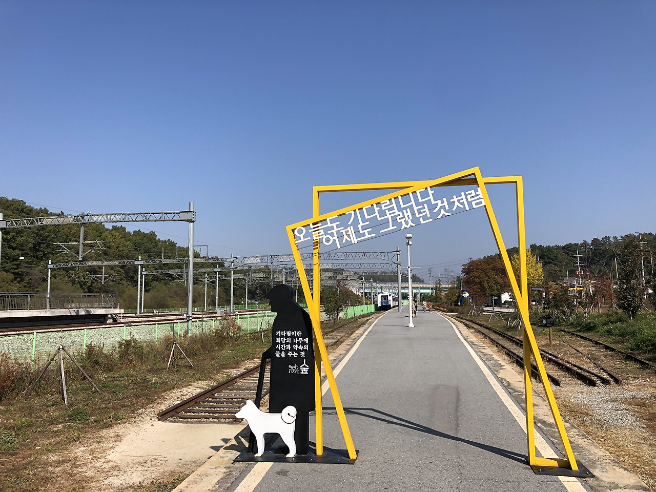 김유정역 주변에서 기차역에 아주 잘 어울리는 글귀를 발견했다. 기차 손님을 기다리면서 관광객도 기다린다는 의미가 있다. 그리고 다시 돌아올 그님을 기다리는 누군가의 애절한 마음까지도.