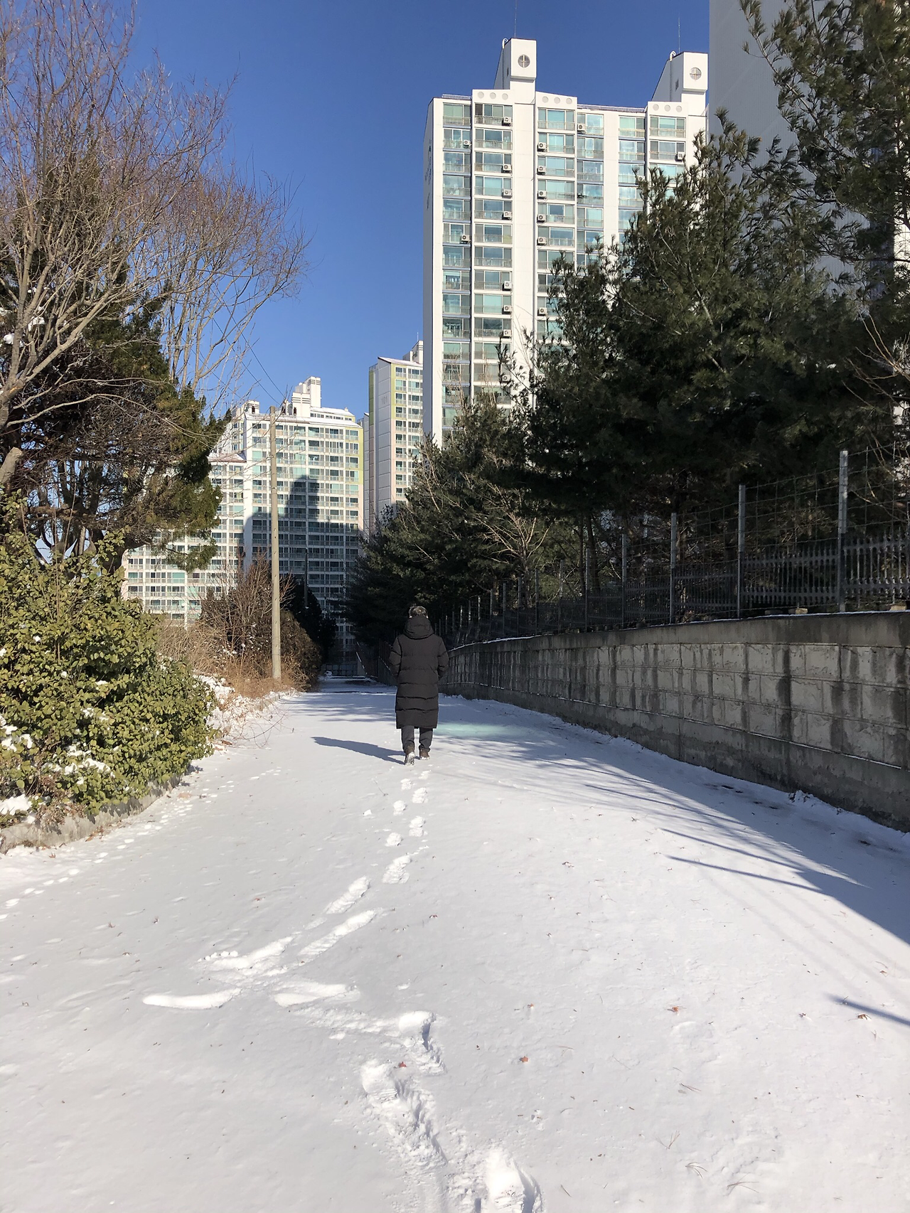 그런데 어제부터 정말 시베리아 한파가 한반도를 뒤덮고 있다. 더구나 폭설까지 내렸다. 오늘 점심식사 후 옆자리의 선배와 함께 롱 패딩을 입고 산책을 하면서 이 얘기를 했다.