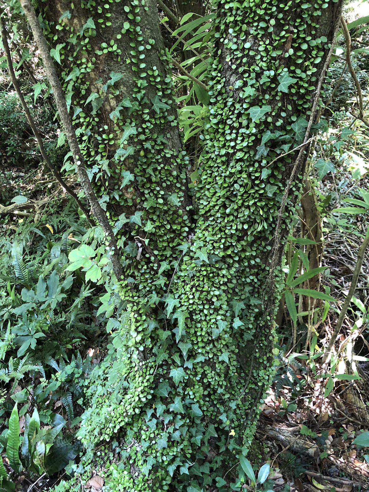갈등(葛藤)이란 칡과 등나무가 서로 얽히는 것과 같이, 개인이나 집단 사이에 목표나 이해관계가 달라 서로 적대시하거나 충돌함, 또는 그런 상태다. 갈등의 사전적 정의다. 그 의미는 알고 있었지만 “칡과 등나무가 서로 얽히는 것처럼” 이란 표현은 오늘 처음 들었다. 제주 곶자왈 해설사로부터다. 실제 칡과 등나무가 서로 얽힌 모습도 곶자왈에서 처음 봤다. 해설사의 설명처럼 등나무와 칡넝쿨이 꽈배기같이 서로 엇갈려서 얽혀 있었다.