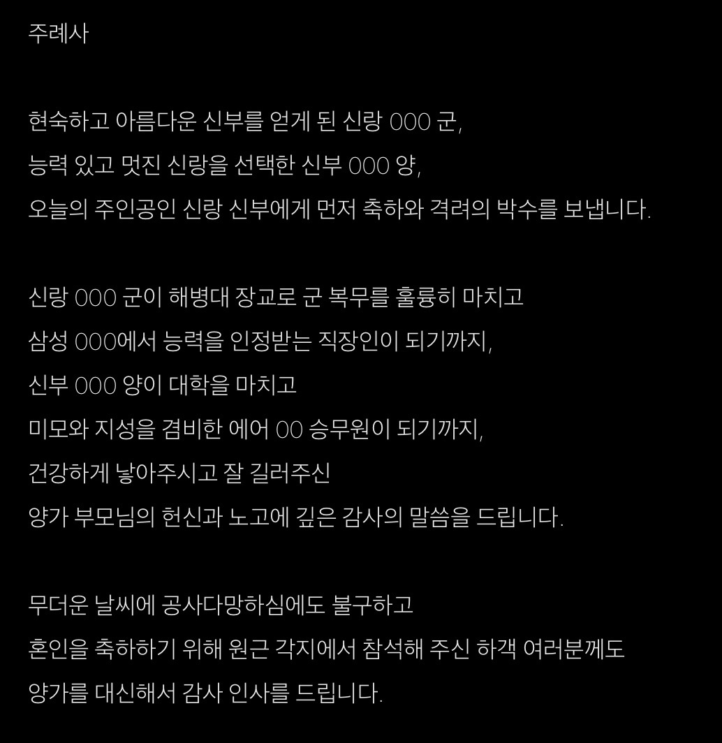 신랑 신부 외 최소 4명은 주례사를 들었다