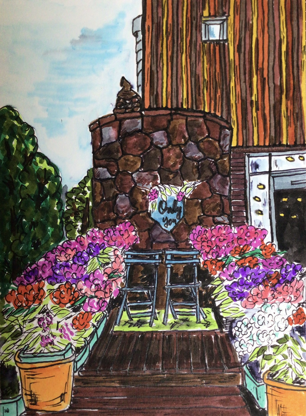 얼마 전부터 오랫동안 잊고 있었던 소질을 계발하기로 했다. 만년필과 형광펜을 끄적거리며 그림을 그리기 시작했다. 지켜보던 딸아이가 36색 워터칼라 브러시 펜 세트와 워터 브러시를 사다 줬다. 오늘 각종 색상의 워터칼라 브러시 펜으로 첫 그림을 그렸다. 제주여행 때 스쳐 지나쳤던 "오직 당신만을 위하여" 의자 그림이다.