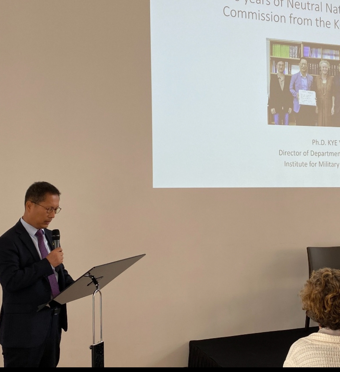 심포지엄 당일, 준비를 위해 삼십 분 일찍 대사관에 도착했다. 연설자 위치, 마이크 상태, 프레젠테이션을 확인하고 블랙티를 한잔 마시면서 마음을 가다듬고 있었다. 함께 기조연설을 하기로 되어있는 스위스 측 교수가 도착했다.