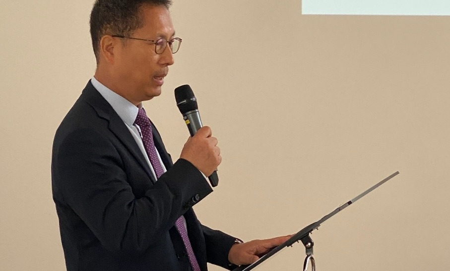 그가 말했다. 스위스 대학에선 독일어로 강의를 하고 있는데, 영어 연설은 해본 적이 없어서 잘할 수 있을지 걱정스럽다고 했다. 나만 영어 연설이 처음인 줄 알았는데, 파트너가 같은 입장이란 얘길 듣고 안도감이 생겼다. 더구나 계획상으론 두 번째 차례였는데, 첫 번째 기조연설자였던 그가 순서를 바꿔달라고 요청해서 그렇게 하자고 한터였다. 매도 빨리 맞는 것이 낫다고 후다닥 기조연설을 해치우고 그의 얘길 들어보잔 생각이 들었다. 20여분의 기조연설을 하는 내내 대사님과 눈을 맞추었다. 그분이 연딘의 바로 앞에 앉아서 흐뭇한 표정으로 연신 고개를 끄덕이면 나의 기조연설을 경청했기 때문이다. 중간 정도 진행하자 연설문의 단어도 바꿀 정도로 마음의 여유도 생겼다.