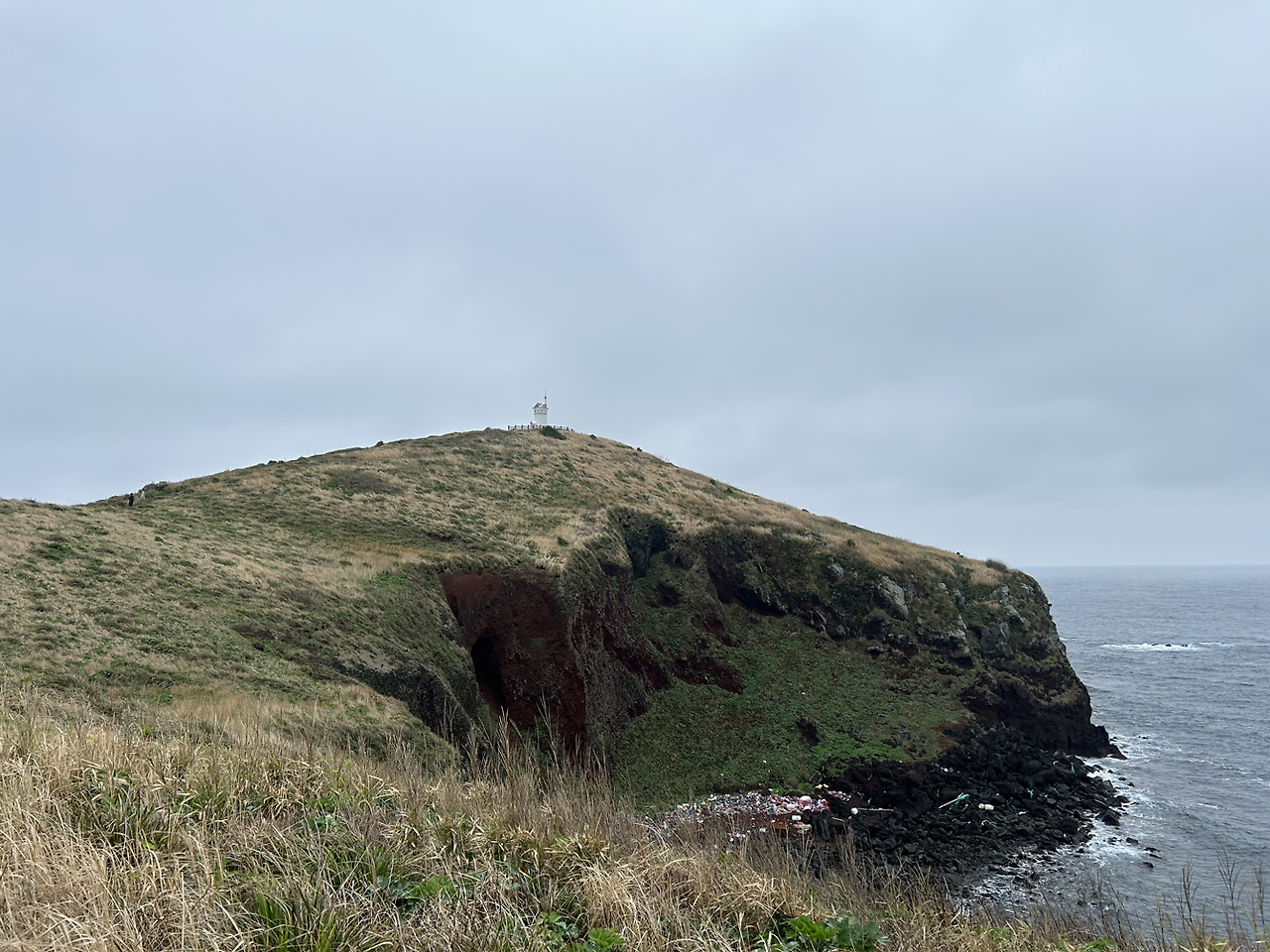오래전에 몇 가구가 살았던 흔적도 남아있다. 왠지 거의 폐허가 된 집터가 흉물스럽기보단 유물처럼 보였다. 섬에서 가장 높다는 곳에 올라서 보니 멀리 흰 등대가 보였다. 저 등대까지 다녀오면 한 시간가량 소요되는 차귀도 둘레길을 한 바퀴 도는 것이라고 한다. 등대를 중심으로 섬의 전경을 촬영했는데, 그야말로 무인도였다. 극소수의 관광객이 함께 한지라 아무도 사진에 잡히지 않았다.