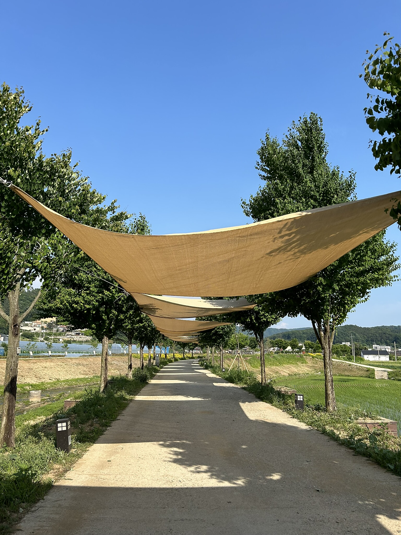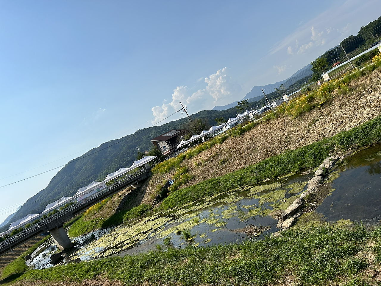 오디 따기 체험농장에 갔다. 오디를 양껏 따먹고 남으면 킬로그램당 오천 원에 사면된다고 했다. 푸짐한 조찬과 오찬으로 인한 포만감이 심해서 농장에서 딴 오디는 두 알 밖에 먹지 못하고 아내와 함께 딴 2통을 모두 포장했다. 이어서 양평밀밭축제를 준비 중인 들판으로 향했다. 지방자치단체 관계자인 듯한 사람들이 행사장을 준비하고 있었다. 개장 하루 전이라는 데 제법 그럴듯하게 꾸며져 있었다. 밀밭에서 가곡을 흥얼거려 본다. “보리밭 사잇길로 걸어가면 님이 부르는 소리 있어 발을 멈춘다. 옛 생각이......”