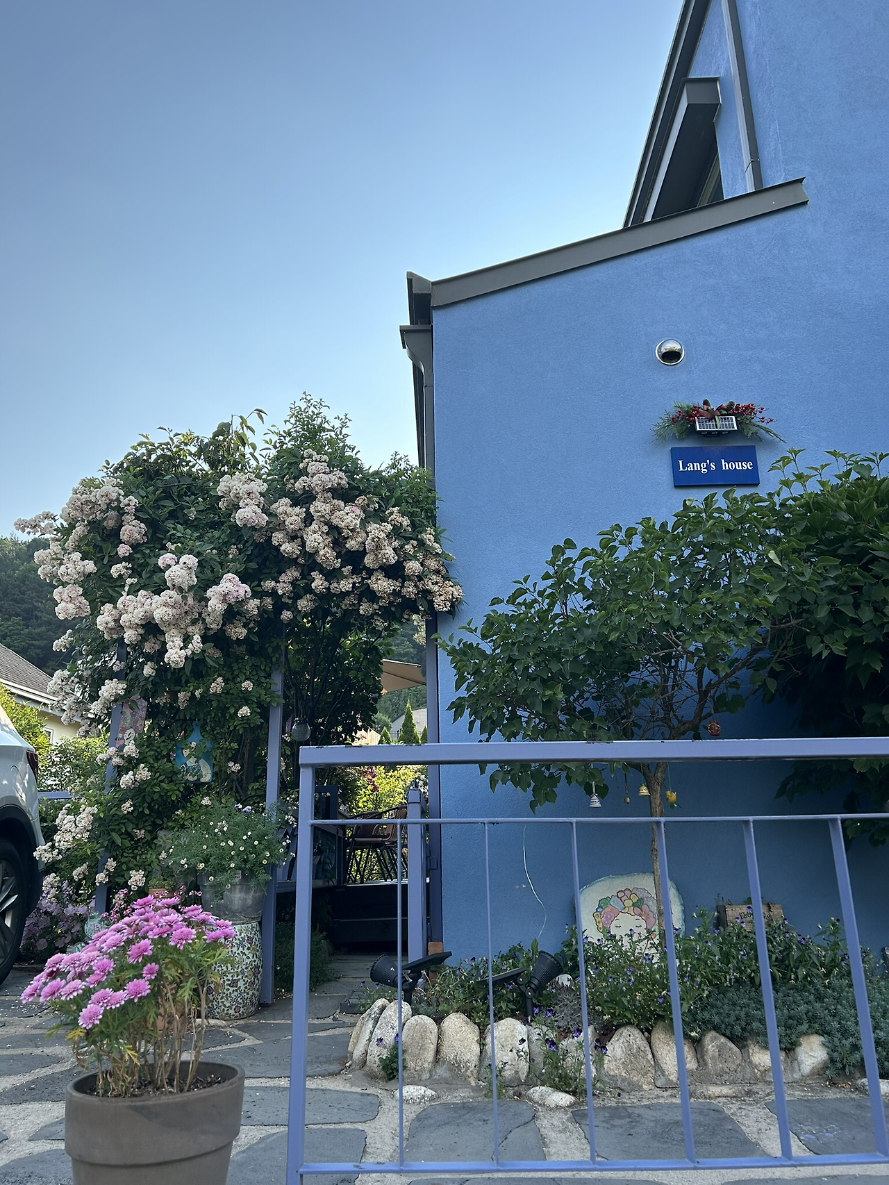 새벽 6시 20분경 출발해서 두 시간을 달려 친구의 전원주택에 도착했다. 만발한 장미꽃이 우릴 반겼다. 꽃을 보면 늘 기분이 좋아진다. 그래서 꽃을 들고 사랑을 고백하는 것이겠지?