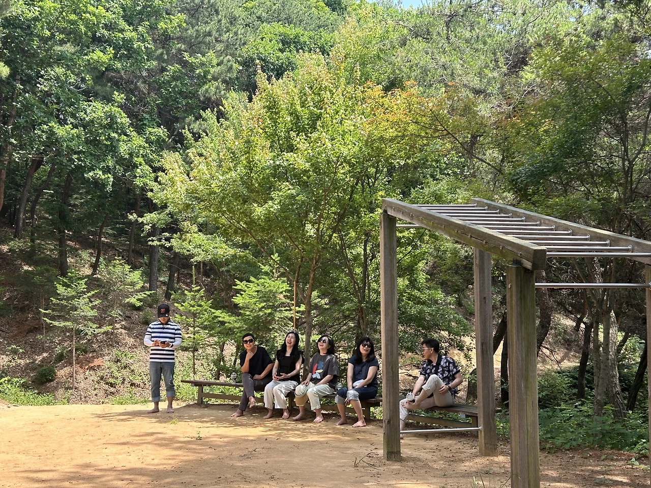 맨발 걷기에 꽂힌 일행들이 있어서 산길에 조성해 놓은 맨발 걷기 코스로 향했다. 흙길을 맨발로 걷는 걸 별로 좋아하진 않지만 모두들 간다기에 따라나섰다. 자잘한 돌에 발바닥이 따끔따끔.... 아내들은 모두 신났다. 맨발 걷길 마치도 쉬면서 오랜만에 아내의 파안대소(破顔大笑)를 보았다. 무척 즐거운 모양이다. 아내가 좋아하니 나도 좋다.