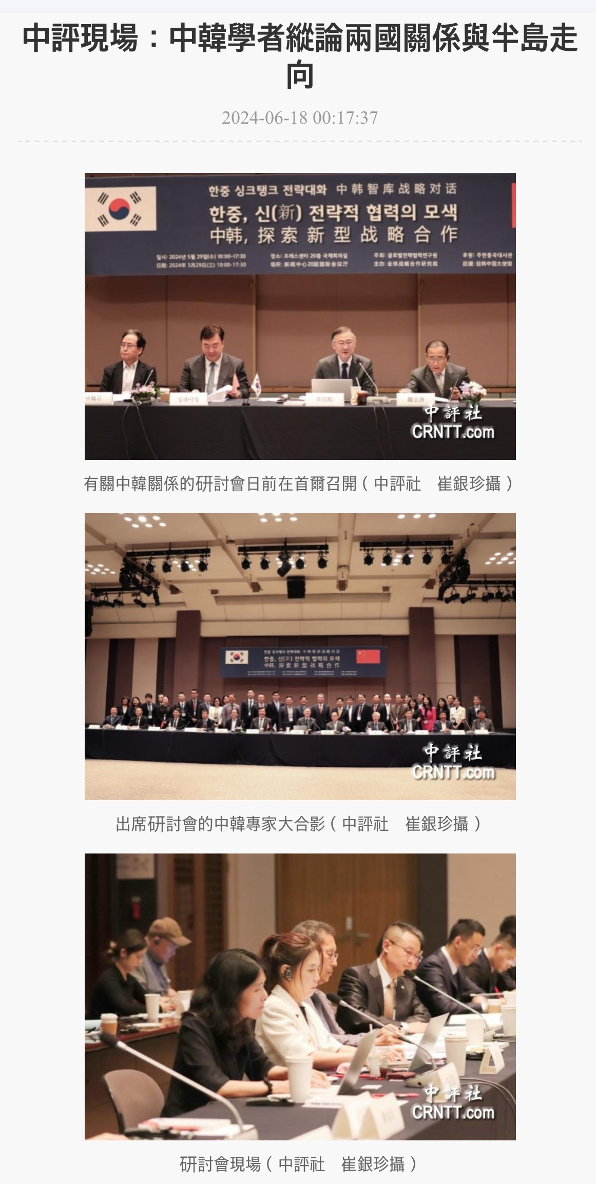 [중국평론통신사]에서 당시 발제 내용을 보도한 것을 찾아보니 각 패널의 핵심 발표내용이 명료하게 정리되어 실려 있었다. 5월 29일 행사에 대한 보도일자가 6월 18일인 것을 보면 사회주의 체제의 특성을 고려할 때 약 20일 동안 검토/보완-검열-수정 등의 과정을 거쳤을 것으로 보인다. 그럼에도 불구하고 내가 발제한 내용이 거의 액면 그대로 실린 걸 보면 가상하다.