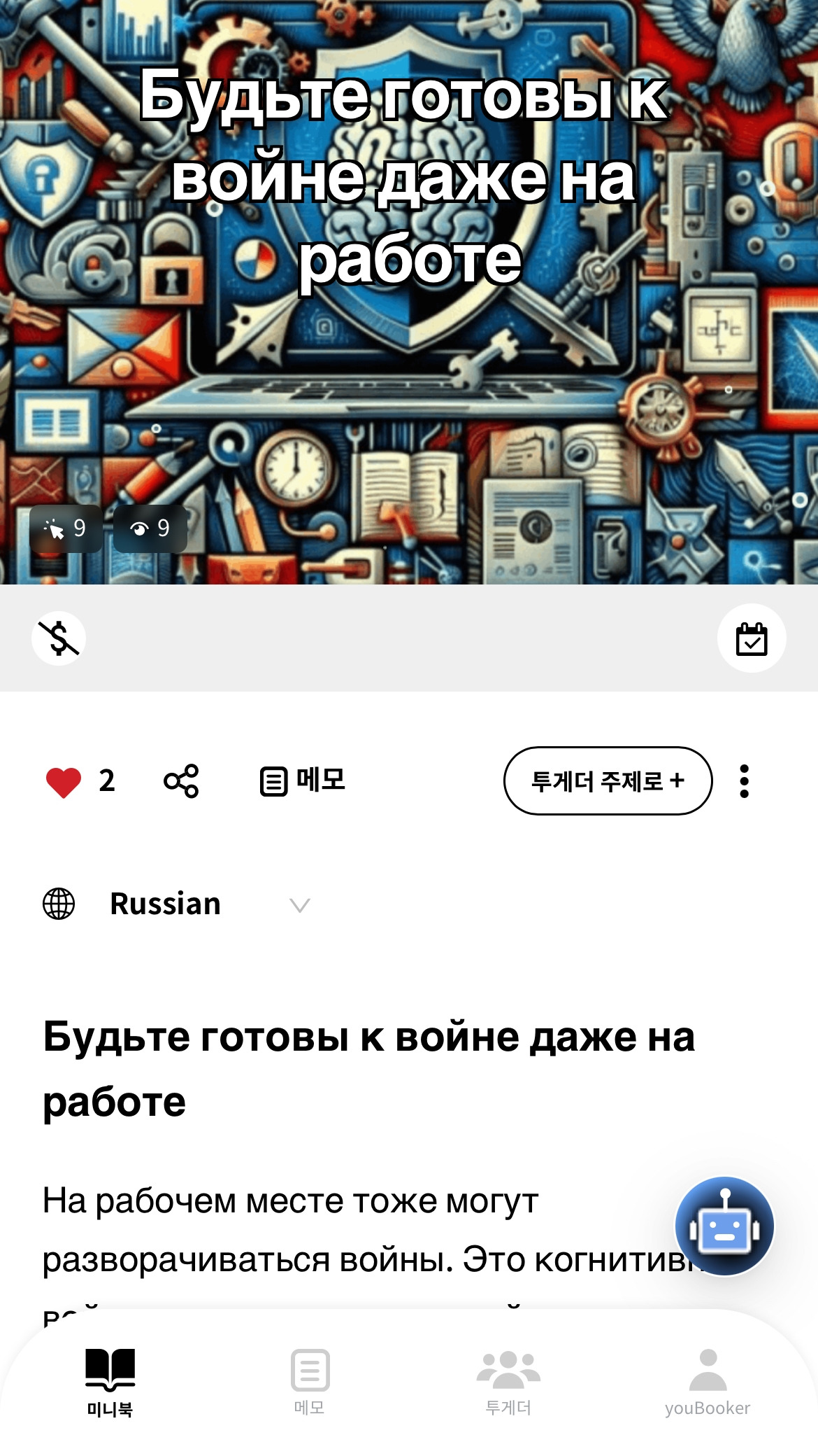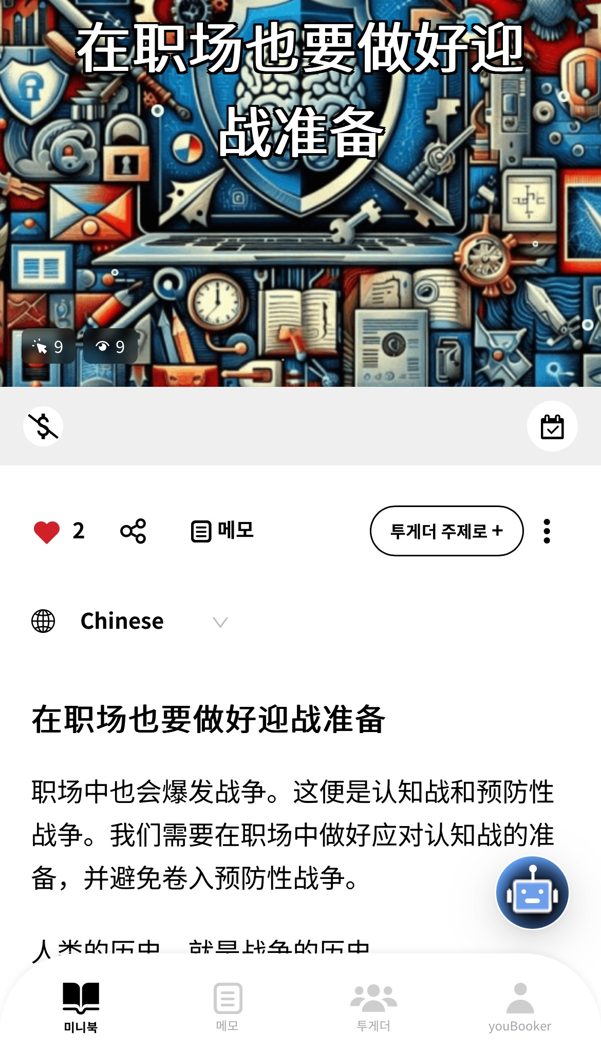 두 번째 미니북을 만들었다. 13개 국어 중에서 내가 원하는 언어로 순식간에 인공지능이 자동번역한 책을 읽을 수 있다. 읽기만 하는 게 아니라 듣기도 가능하다.