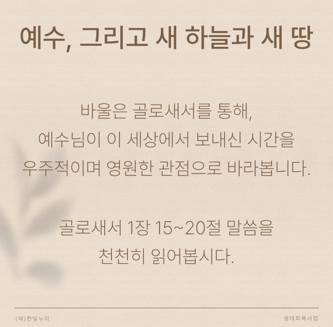 골로새서 1장 15~20절 말씀을 천천히 읽어봅시다.