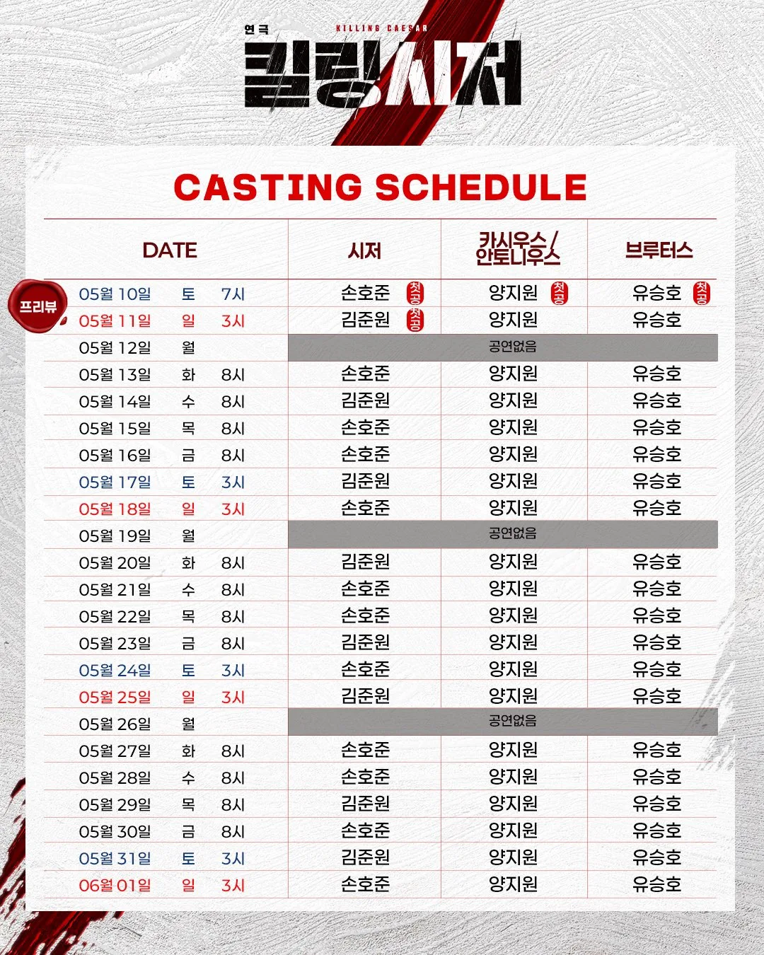2025년 가장 완벽한 연극 〈킬링시저〉는 5월 10일부터 7월 20일까지 서강대 메리홀 대극장에서 공연된다.
