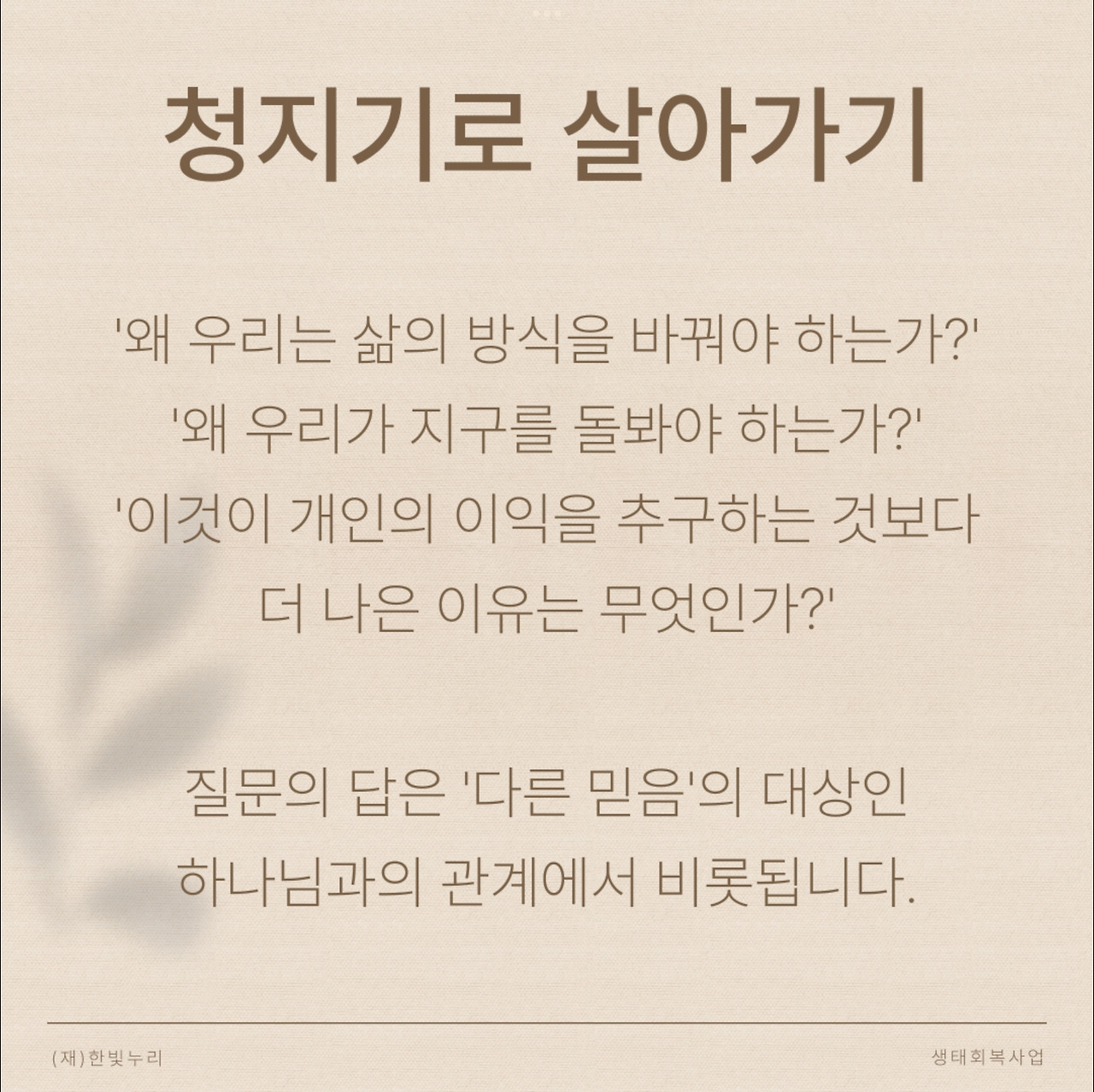 ‘왜 우리는 삶의 방식을 바꿔야 하는가?’ ‘왜 우리가 지구를 돌봐야 하는가?’ ‘이것이 개인의 이익을 추구하는 것보다 더 나은 이유는 무엇인가?’
